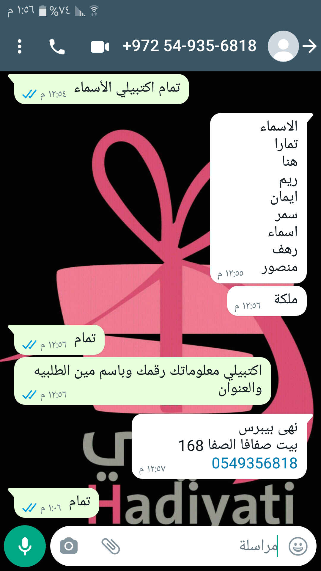 تم الاتصال يوم الخميس او السبت تكون عندها ودخلوها بكرا ع التوصيل