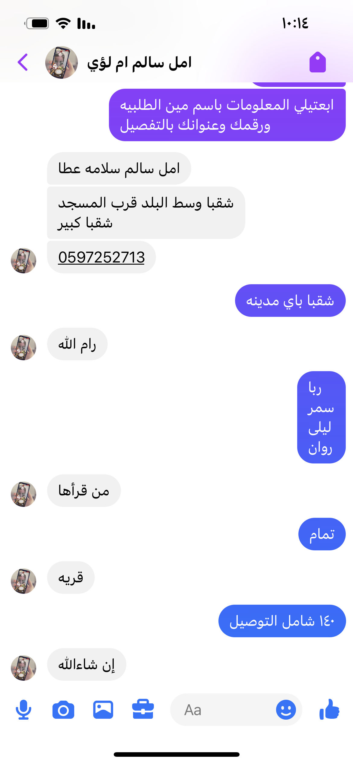 عدد اربعه الاسماء … ١- ربا …. ٢- سمر …. ٣-ليلى ….. ٤-روان….. 140 شامل التوصيل
