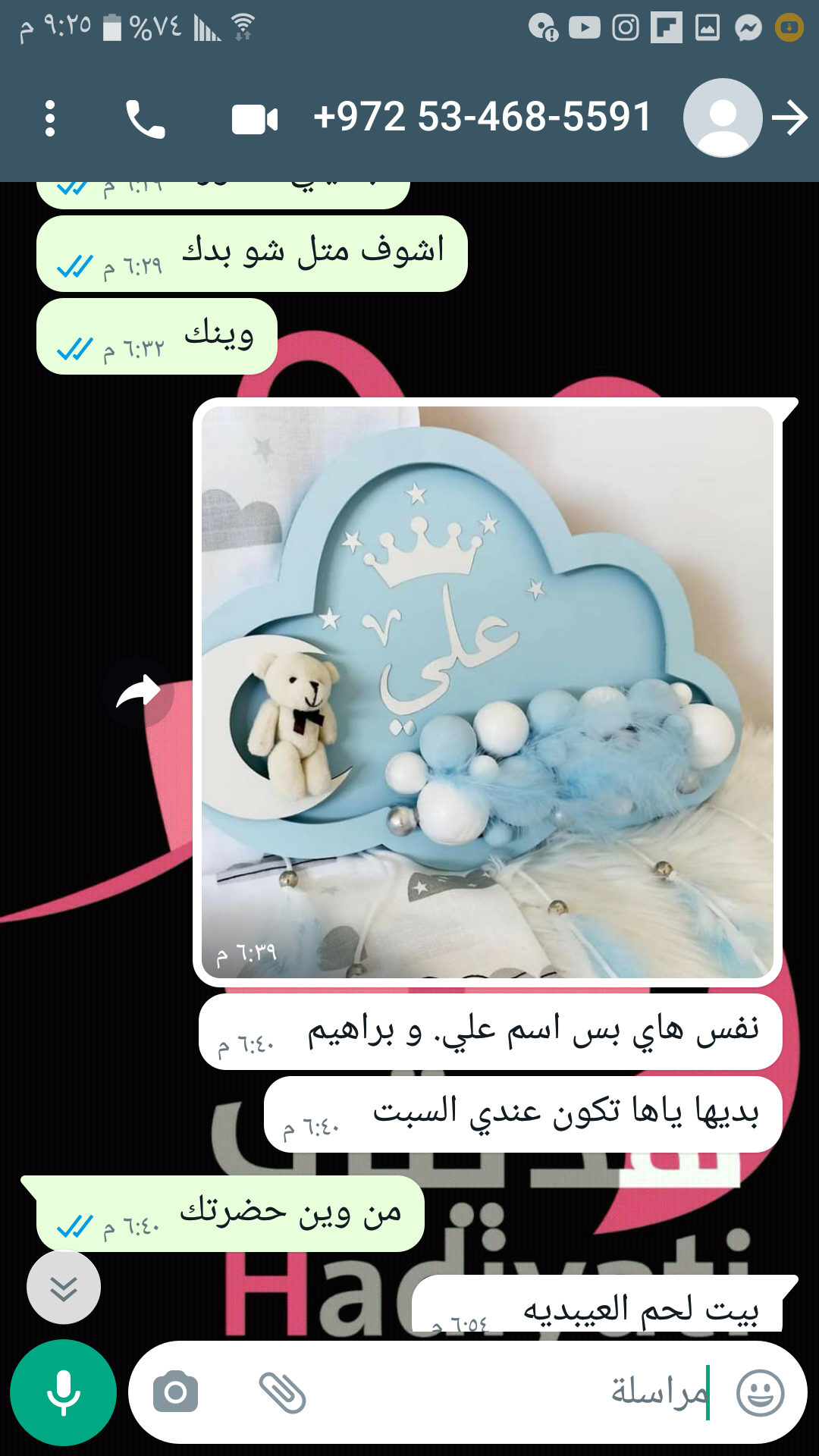 عدد 2 الأسماء علي وإبراهيم لون ازرق نفس صورة المنتج يوم السبت يكونو عندها 240 شامل التوصيل
