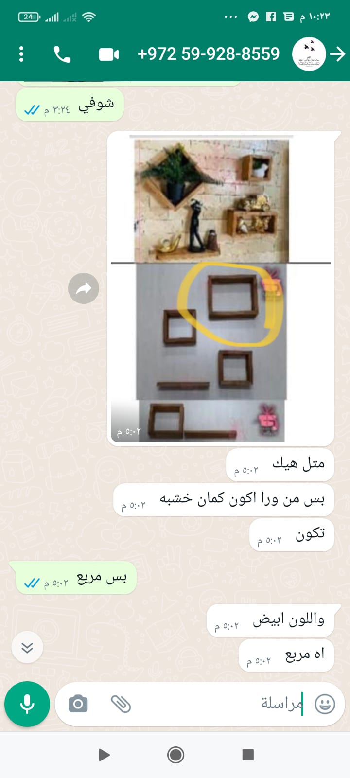 مربع خشب متل الي بصوره لونه ابيض ومسكر من الخلف و تحطلي من ورا تعليقه عليها لو سمحت