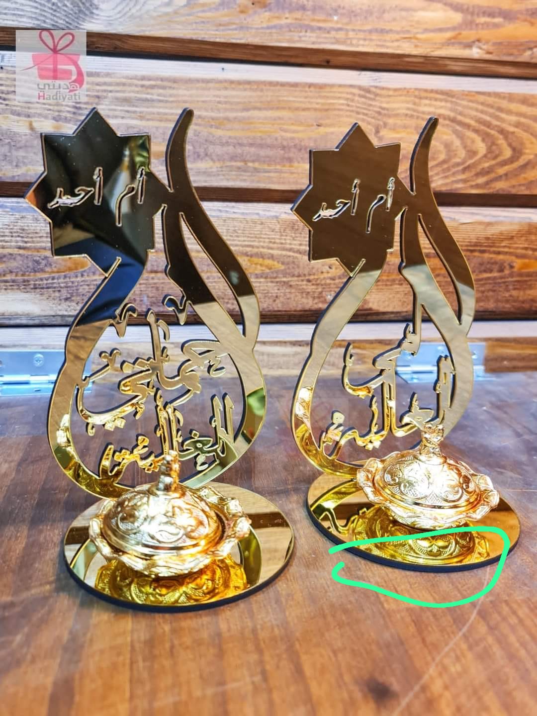 20 توزيعة مع قاعدة صغيرة طول 5 قطر 5سم اسم الله لون ذهبي