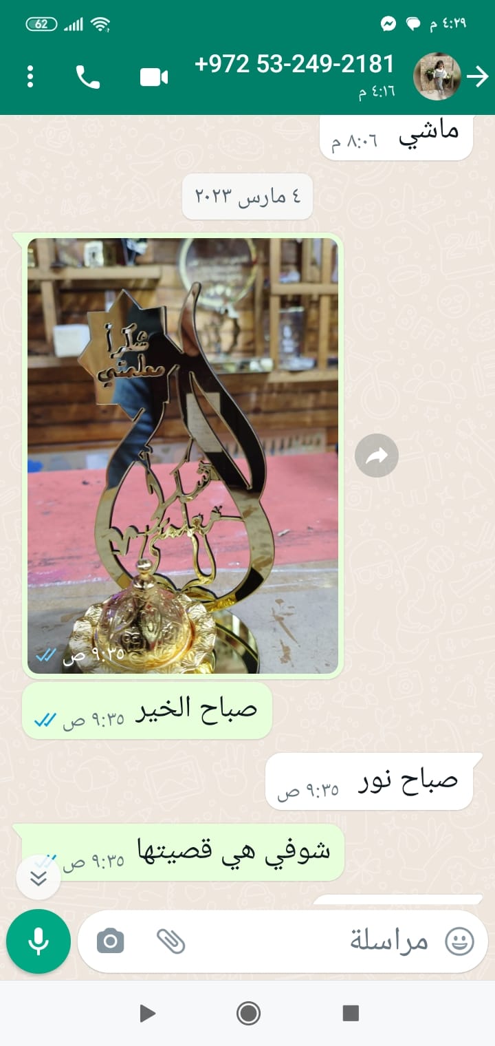 مبخره شكرا معلمتي من تحت شكرا معلمتي وفوق شكرا معلمتي عدد 30وحده وأربعه مكتوب عليها. ام مسرور من فوق حفظك الرحمن ام مهند من فوق حفظك الرحمن ام عيسى حفظك الرحمن ام مجدي حفظك الرحمن ملاحظة مستعجله الاستلام من المحل