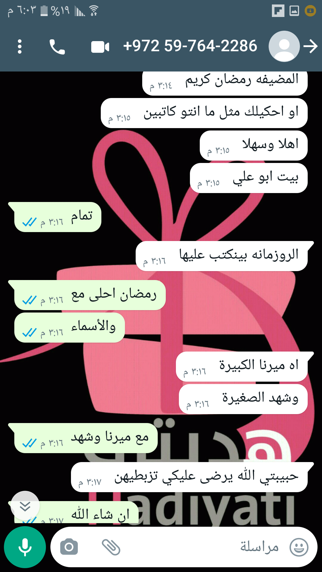 رزنامه لون زهري مع صورتين الكتابه عليها رمضان احلى مع ميرنا وشهد