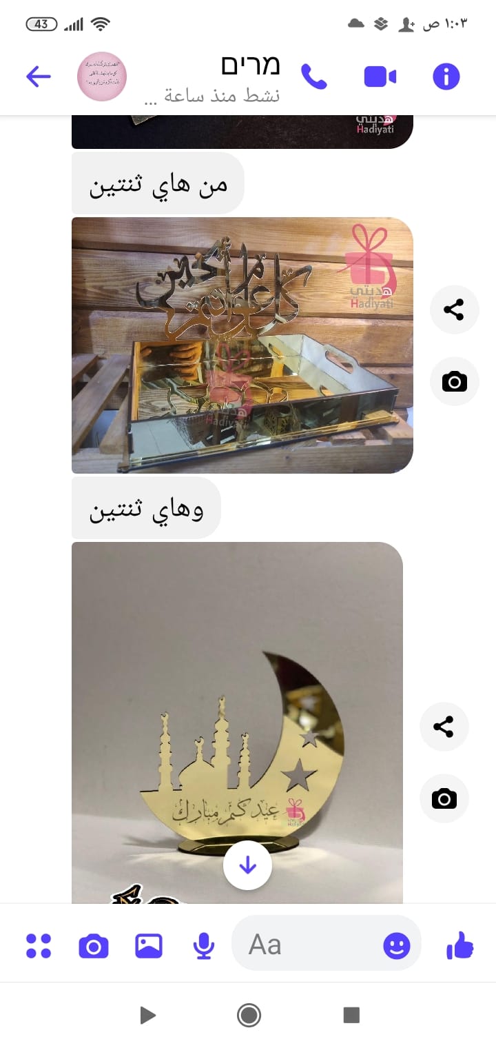 صنيه العيد عدد 2 مكتوب عليها كل عام وانتم بخير لون ذهبي سعر 70شيكل الاستلام من المحل