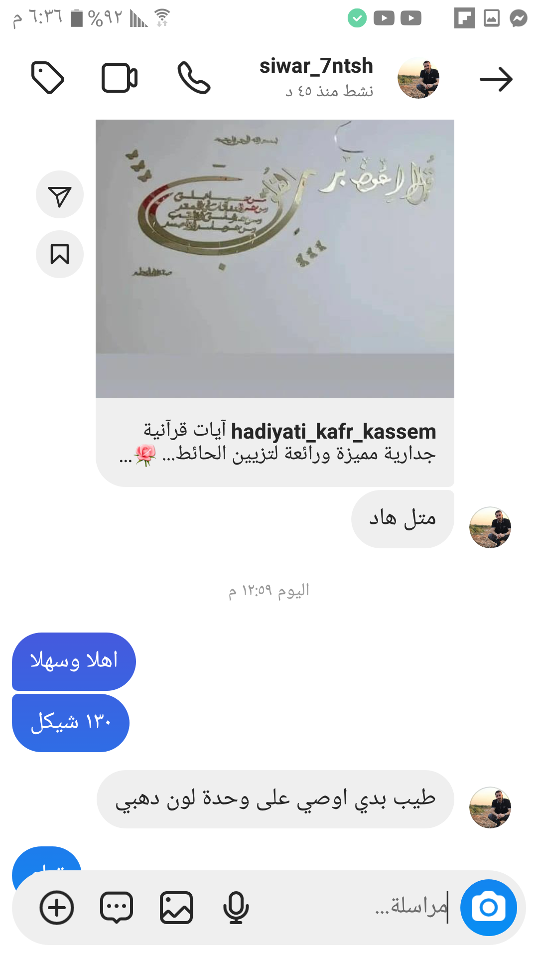 | السعر المبيوع | 130 شيكل |