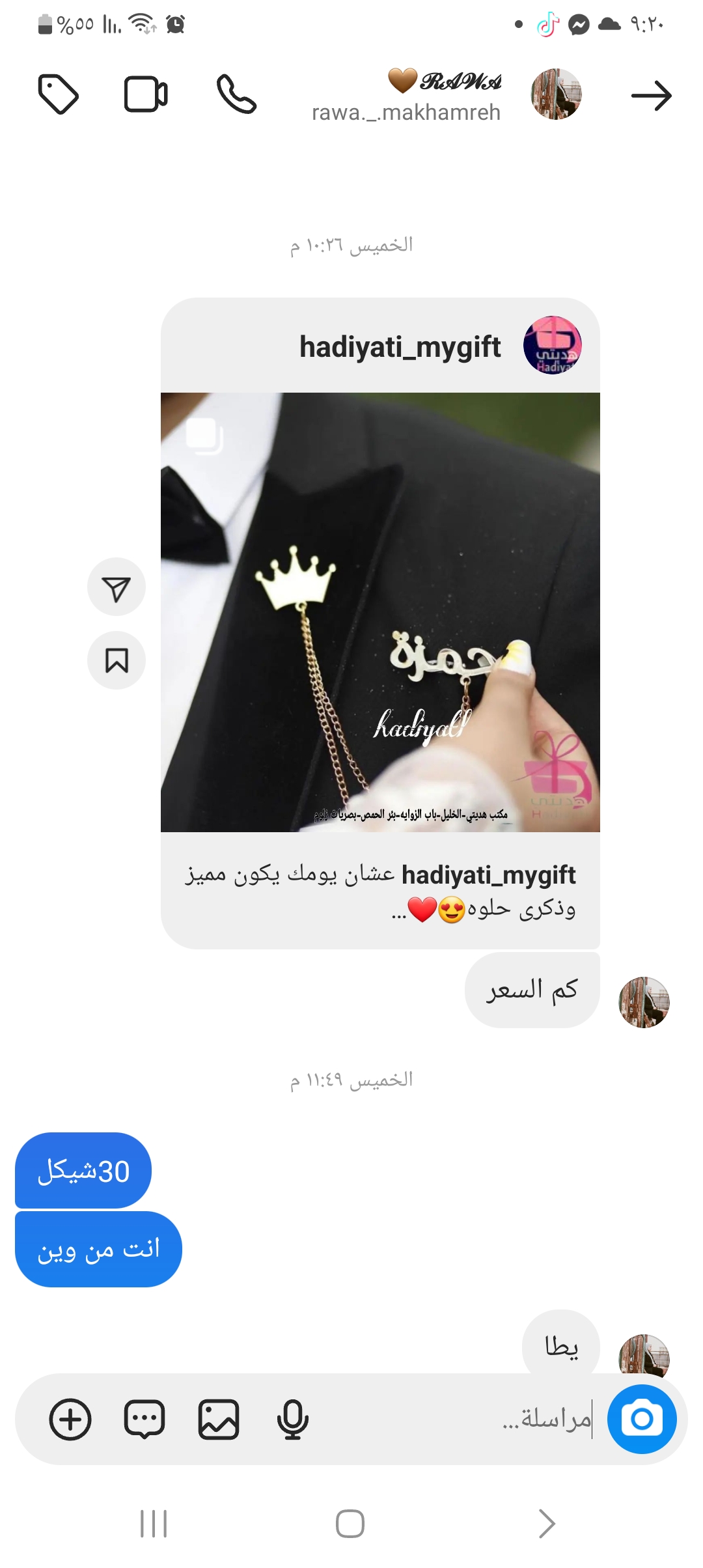 دبوس بدله اسم حمزه لون فضي ولغه عربيه