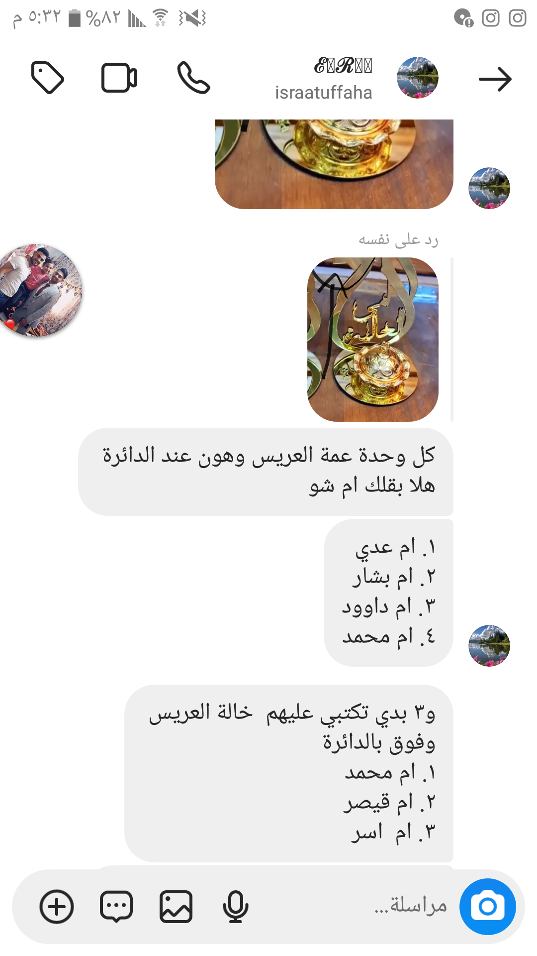 اربعة ( عمة العريس) وع القاعدة تحت اسمين محمد وقلب واسراء وفوق بالنجمة ....