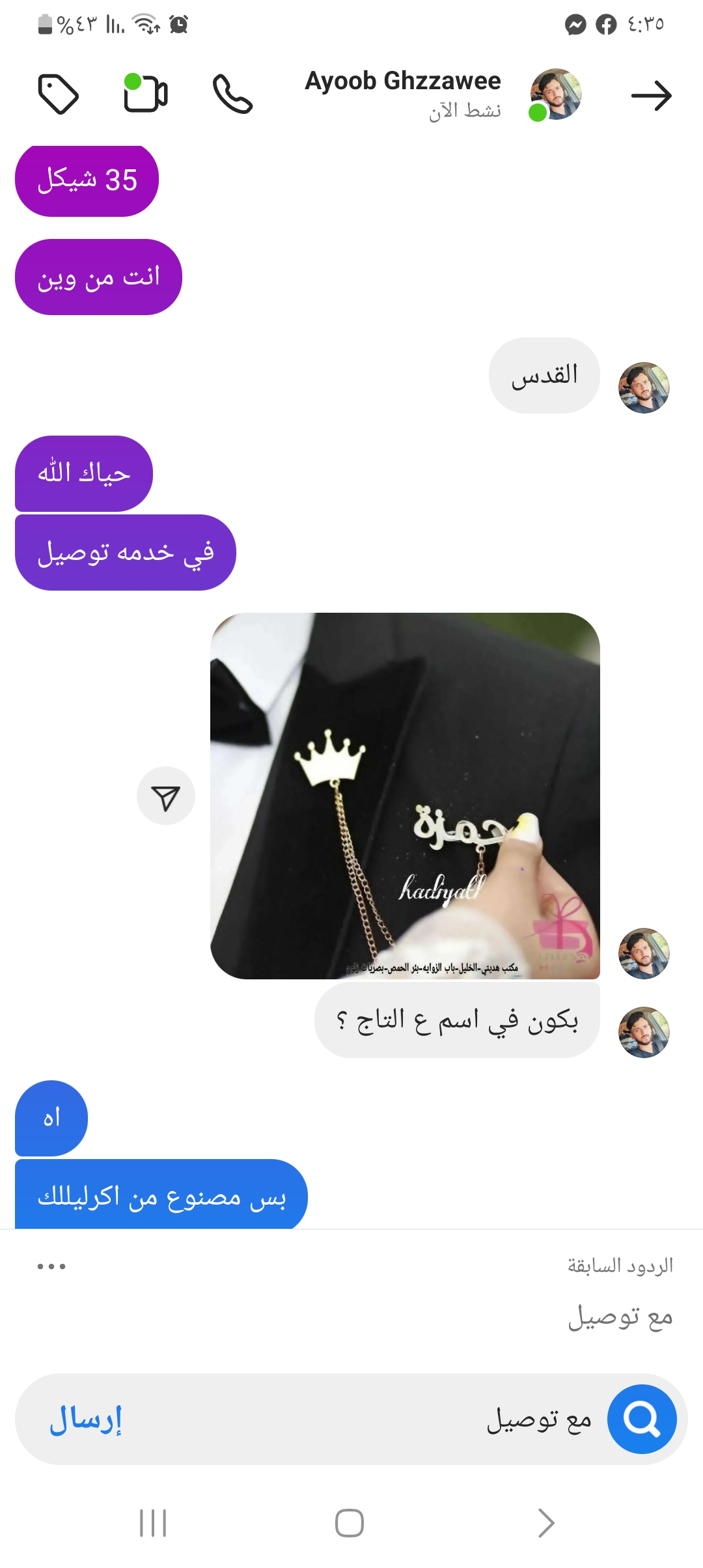 شامل التوصيل 65شيكل