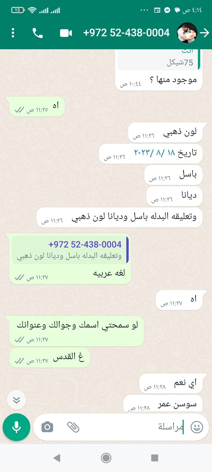 دبوس بدله اسم باسل وديانا لون ذهبي لغه عربيه سعر شامل توصيل 65 شيكل