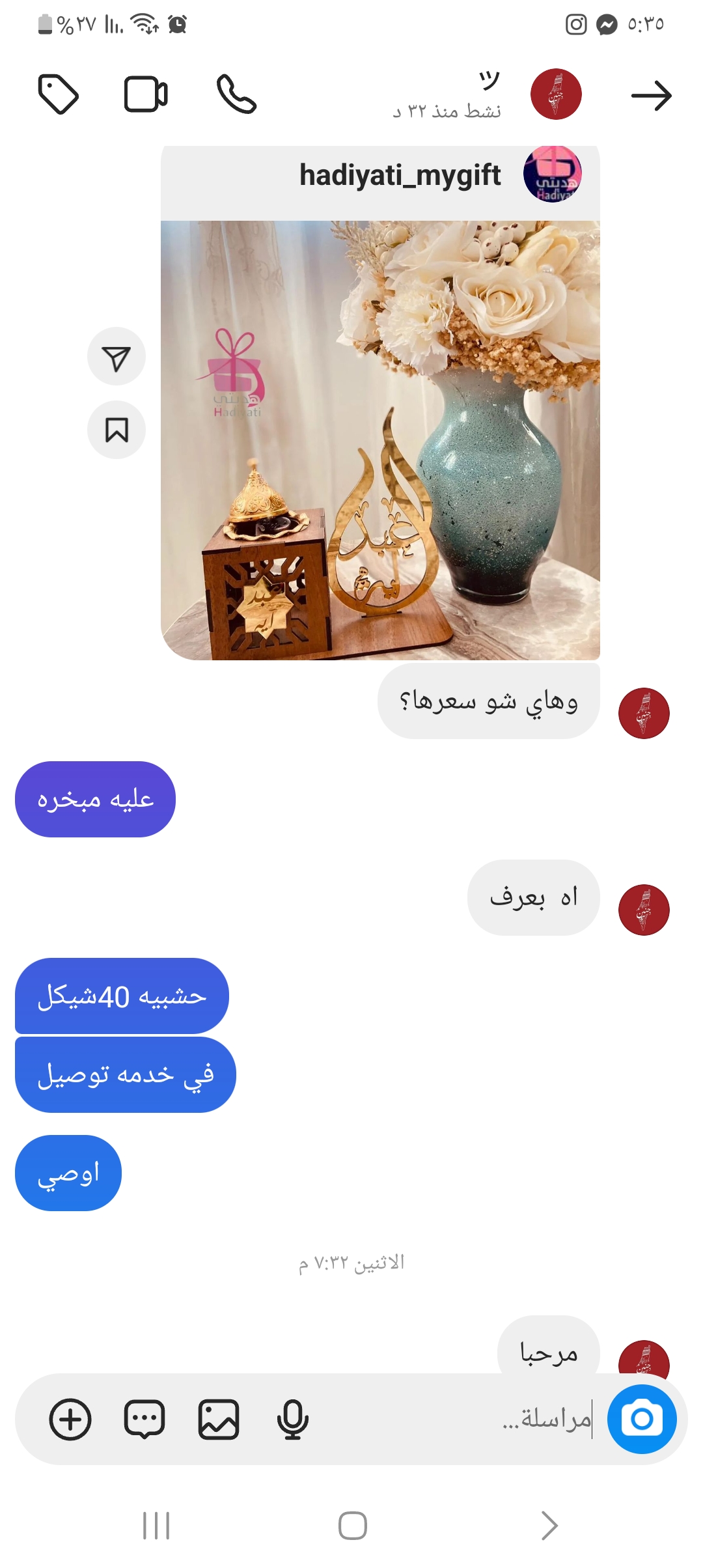 | السعر المبيوع | 40 شيكل |