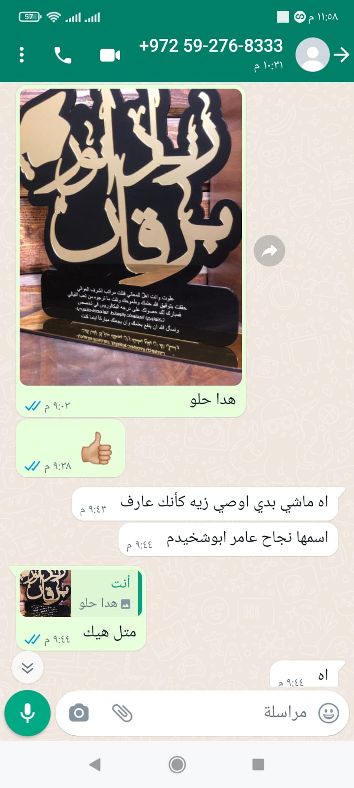 درع مكتوب عليه اسمها نجاح عامر ابوشخيدم