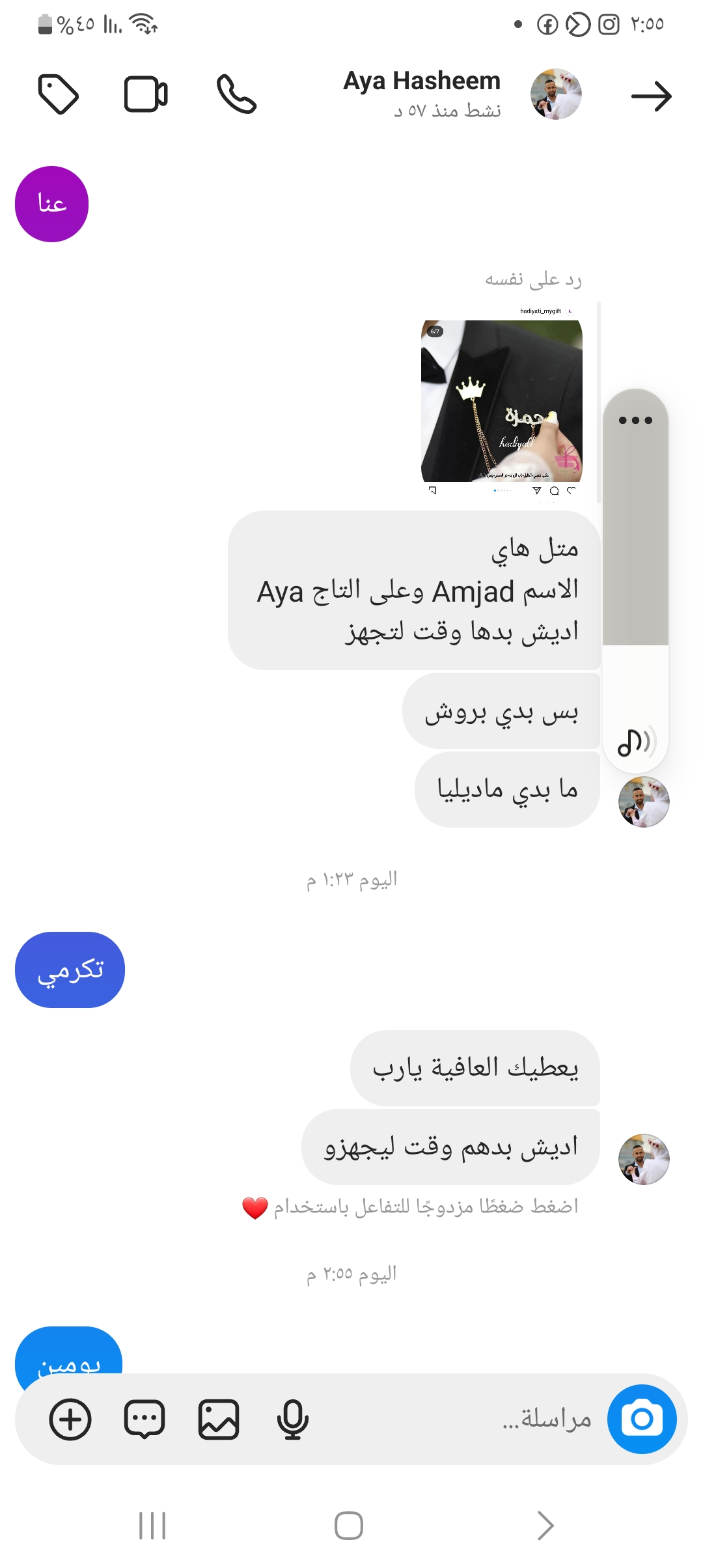 دبوس بدله الاسم Amjad وعلى التاج Aya لون فضي
