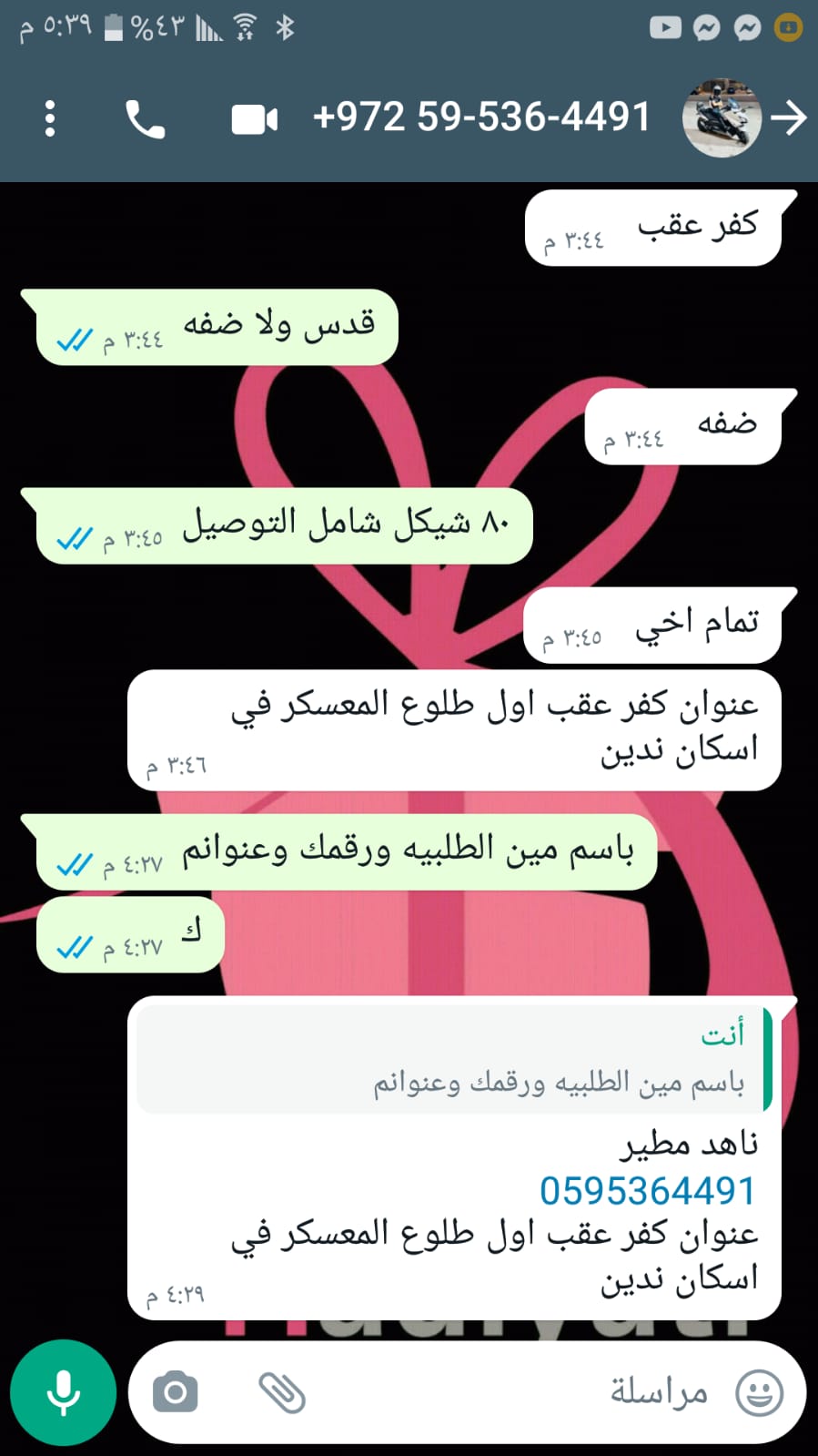 | سعر التوصيل | شيكل |