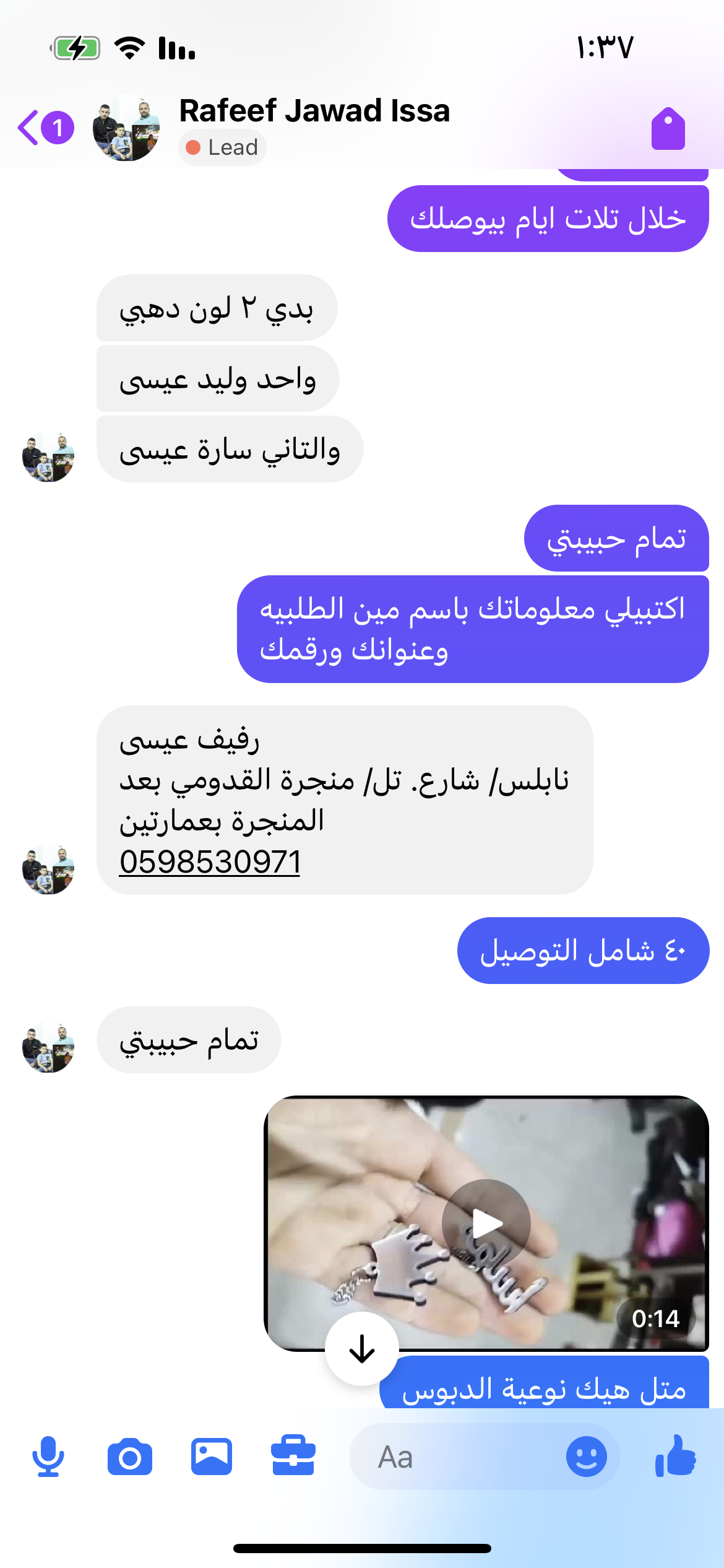 | سعر التوصيل | شيكل |