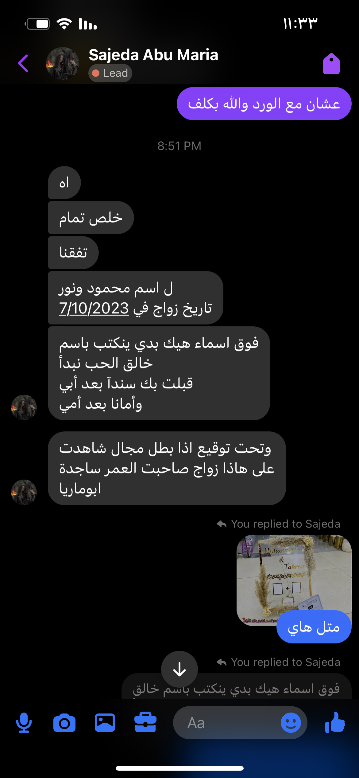 وتحت توقيع اذا بضل في مجال اكتب ( شاهدت على هذا الزواج صاحبة العمر ساجدة ابوماريا ) بخط صغير