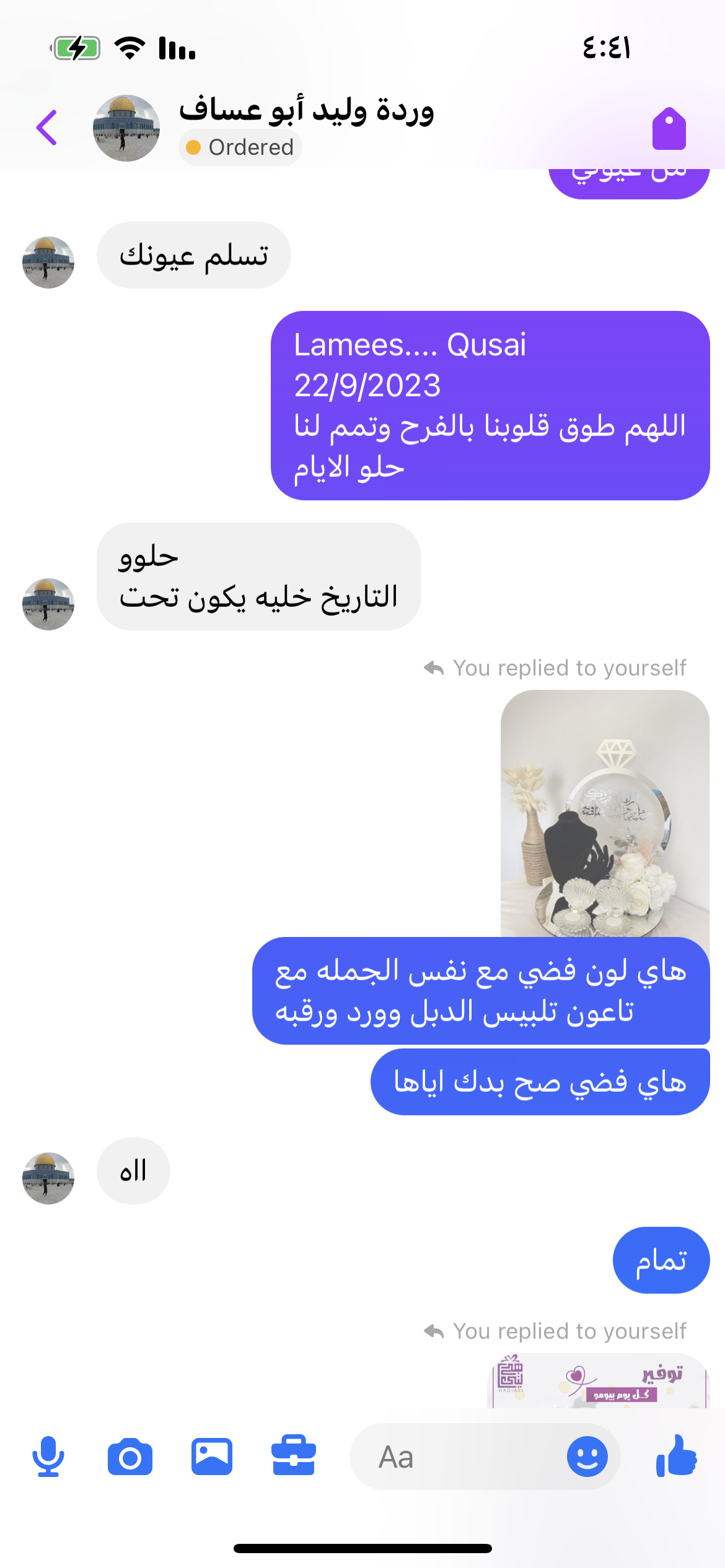 Lamees.... Qusai اللهم طوق قلوبنا بالفرح وتمم لنا حلو الايام 22/9/2023 مع الزينه نفس الورد بالزبط