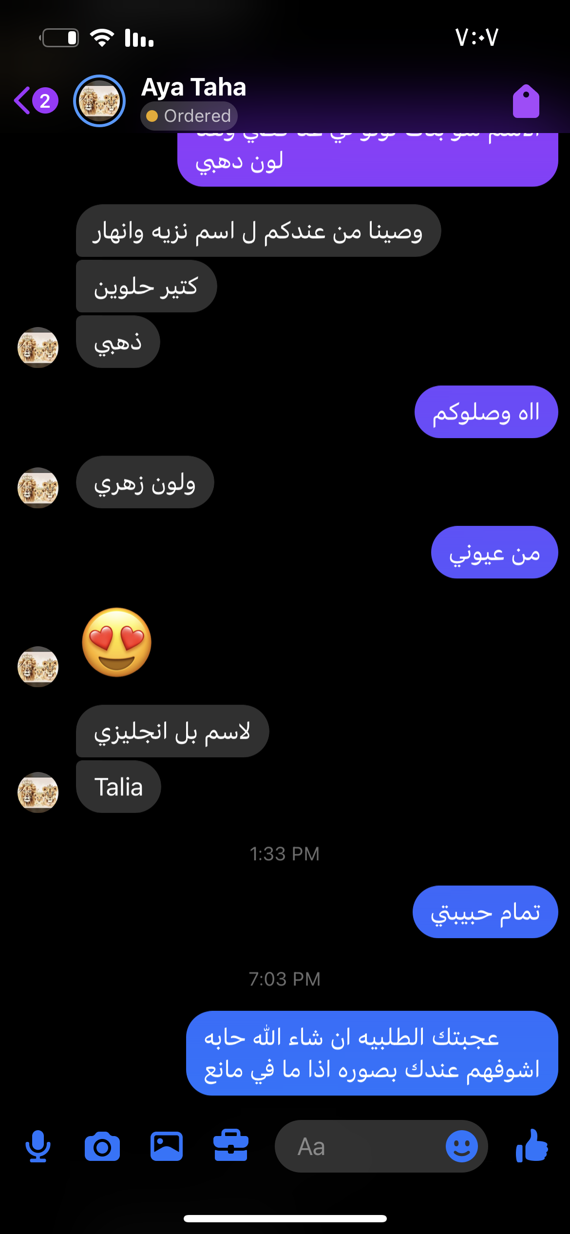 تعليقه لون زهر الاسم ( Talia ) مع نجوم الاسم لون دهبي 100 شامل التوصيل