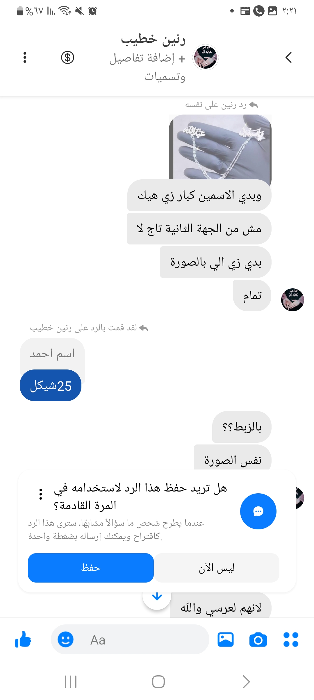 دبوس بدله اسم رنين وأحمد لون فضي ولغه عربيه نفس الخط والحركات