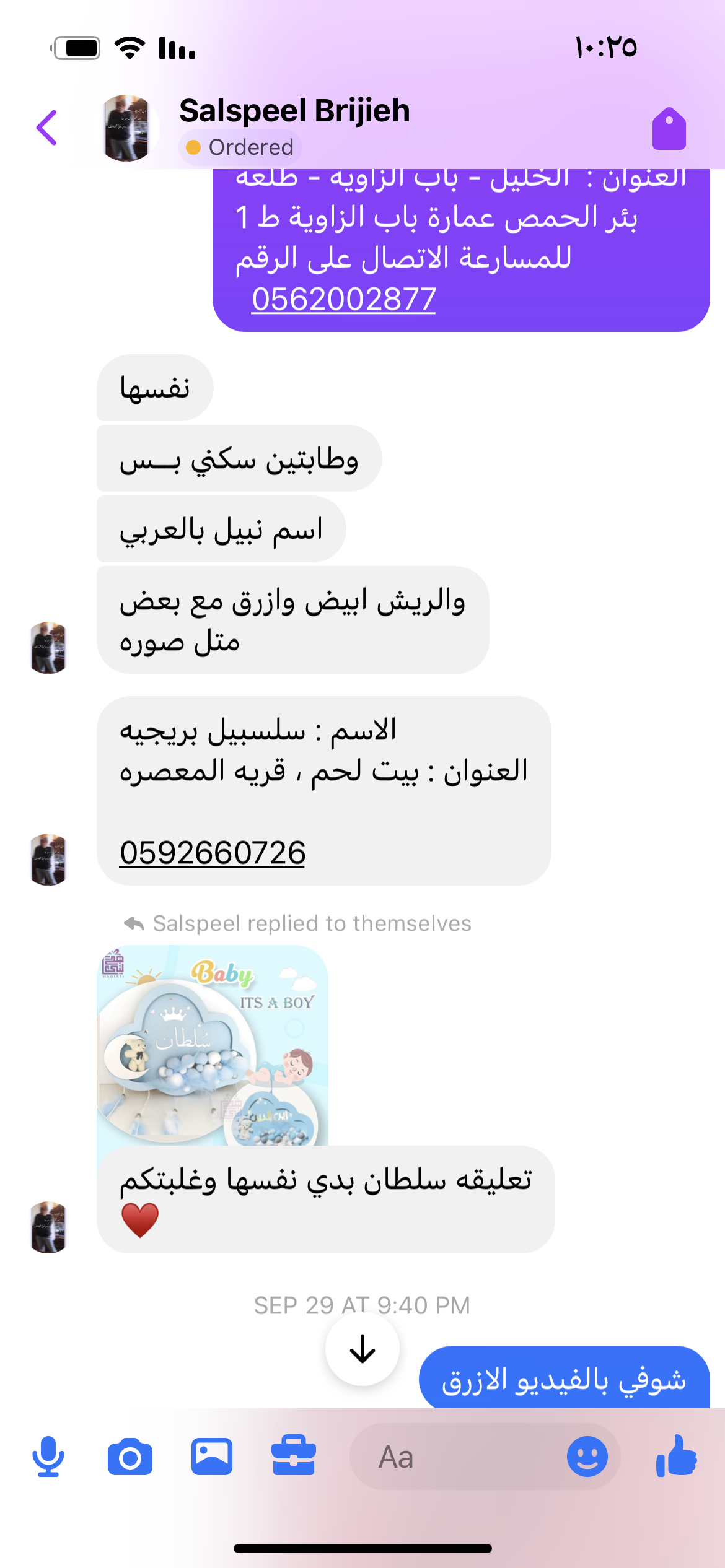 الاسم نبيل مع حركات لون التعليقه لون ازرق الاسم لون فضي مع التاج ولنجوم الكرات كلو ازرق وابيض وبس تنتين فضي والريش ابيض وازرق …. نفس تبعت يلي حاطتها بالزبط والاسم والتاج والنجوم نفس السستم 100 شامل التوصيل