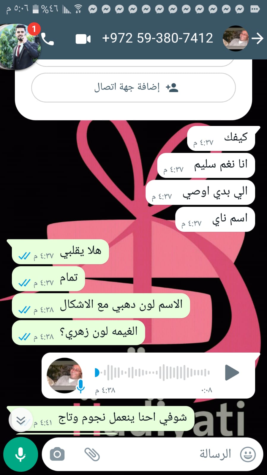 تعليقة البيبي لون زهري الاسم ناي نفس الخط باب بالصورة لون دهبي مع الاشكال