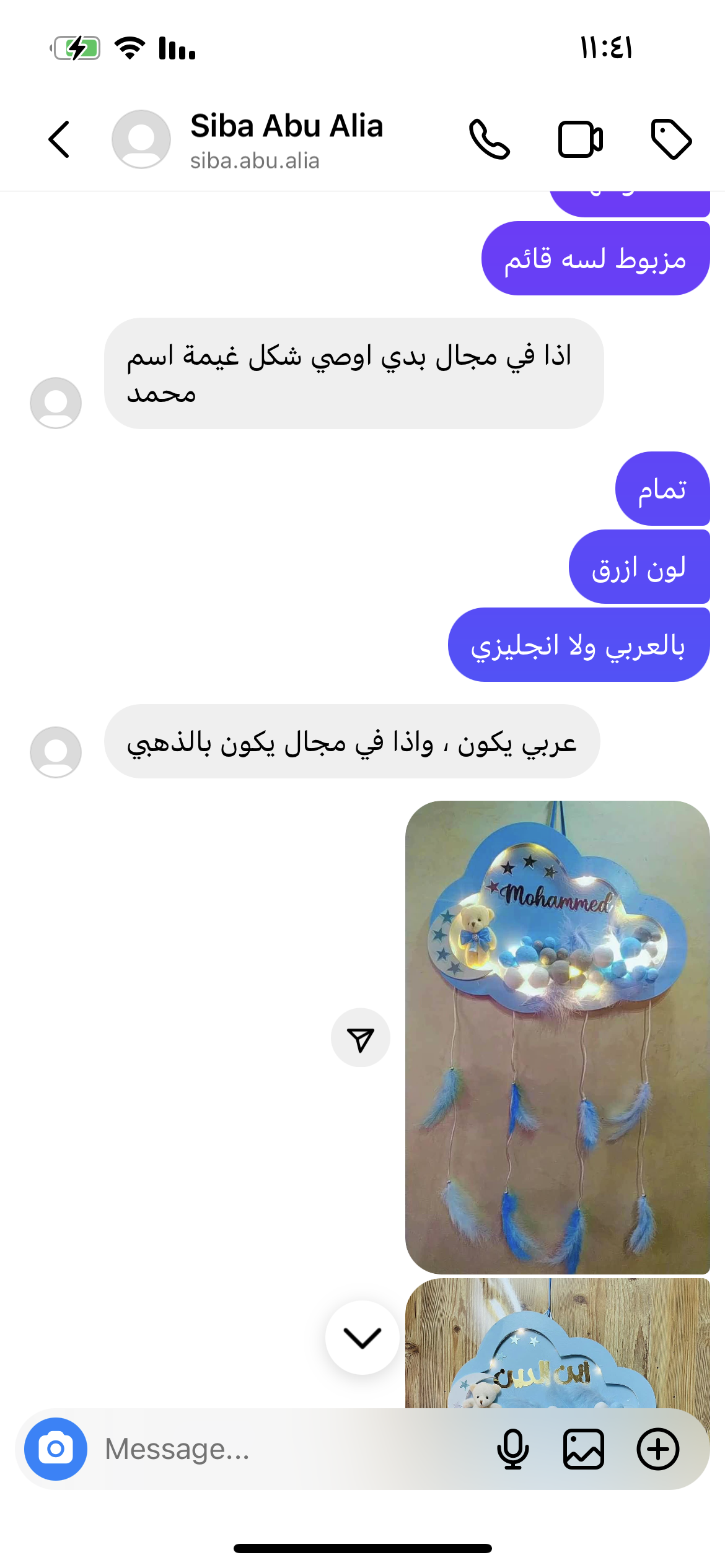 تعليقة لون ازرق اسم محمد لون دهبي مع الاشكال 110 شامل التوصيل