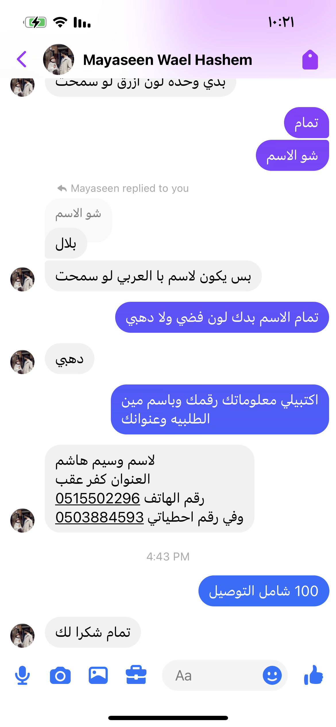 | اسم شركة التوصيل | |