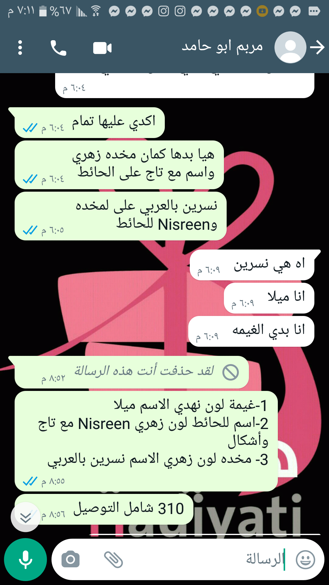 مخدة لون زهري الاسم نسرين بالعربي مع الاشكال