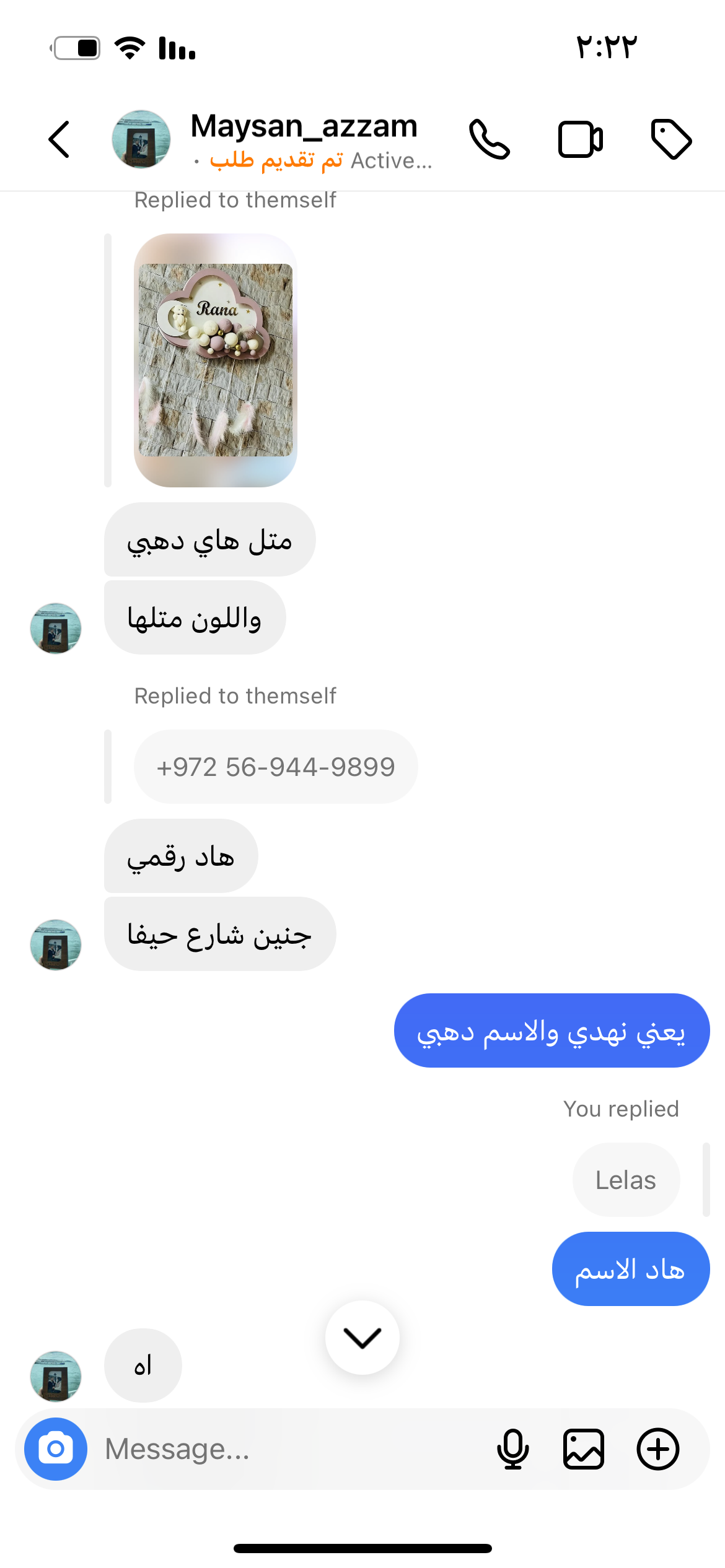 تعليقة غيمه لون نهدي والاسم لون دهبي Lelas
