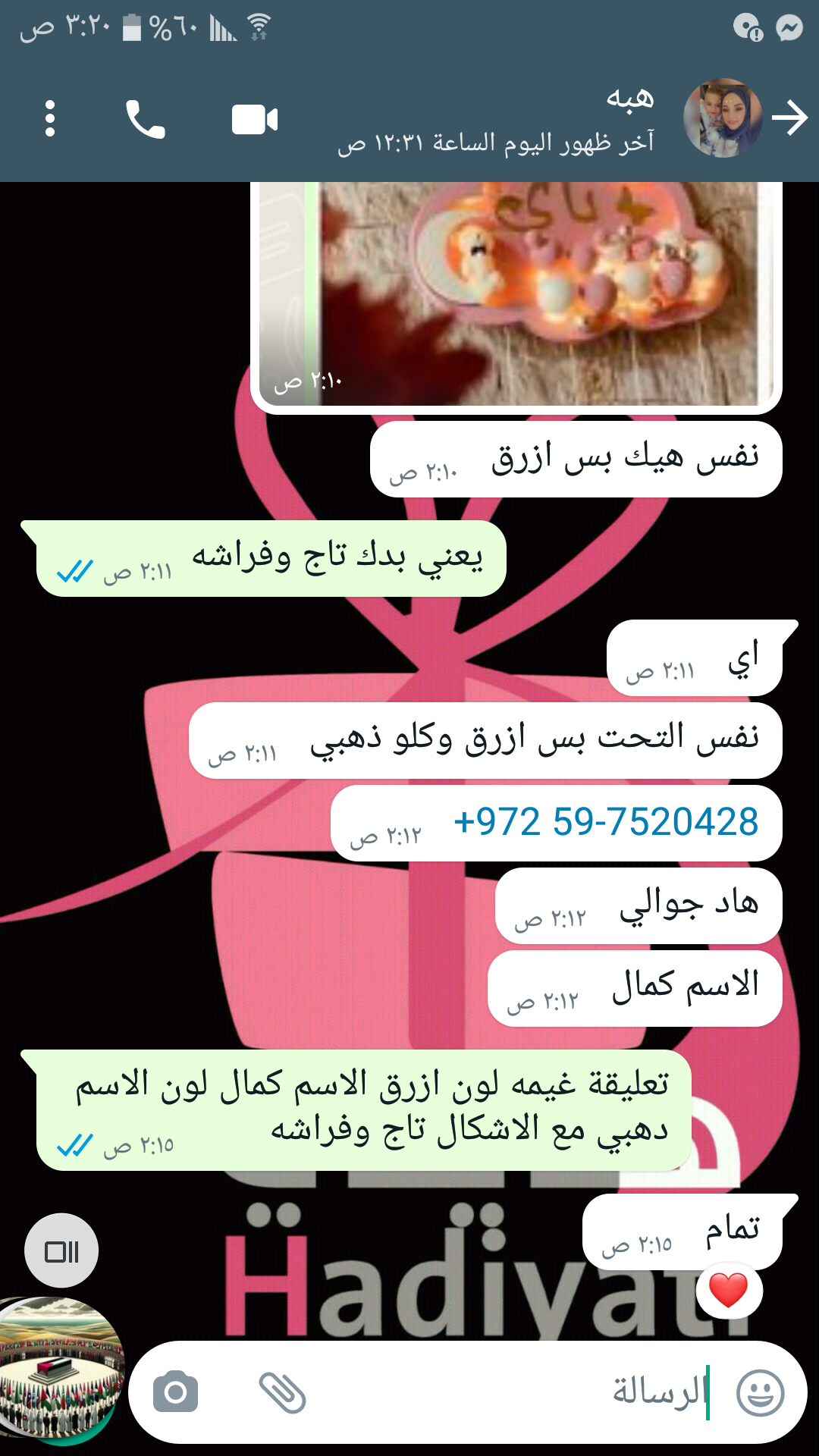 تعليقة غيمه لون ازرق الاسم كمال لون الاسم دهبي مع الاشكال تاج فوق الاسم وفراشه