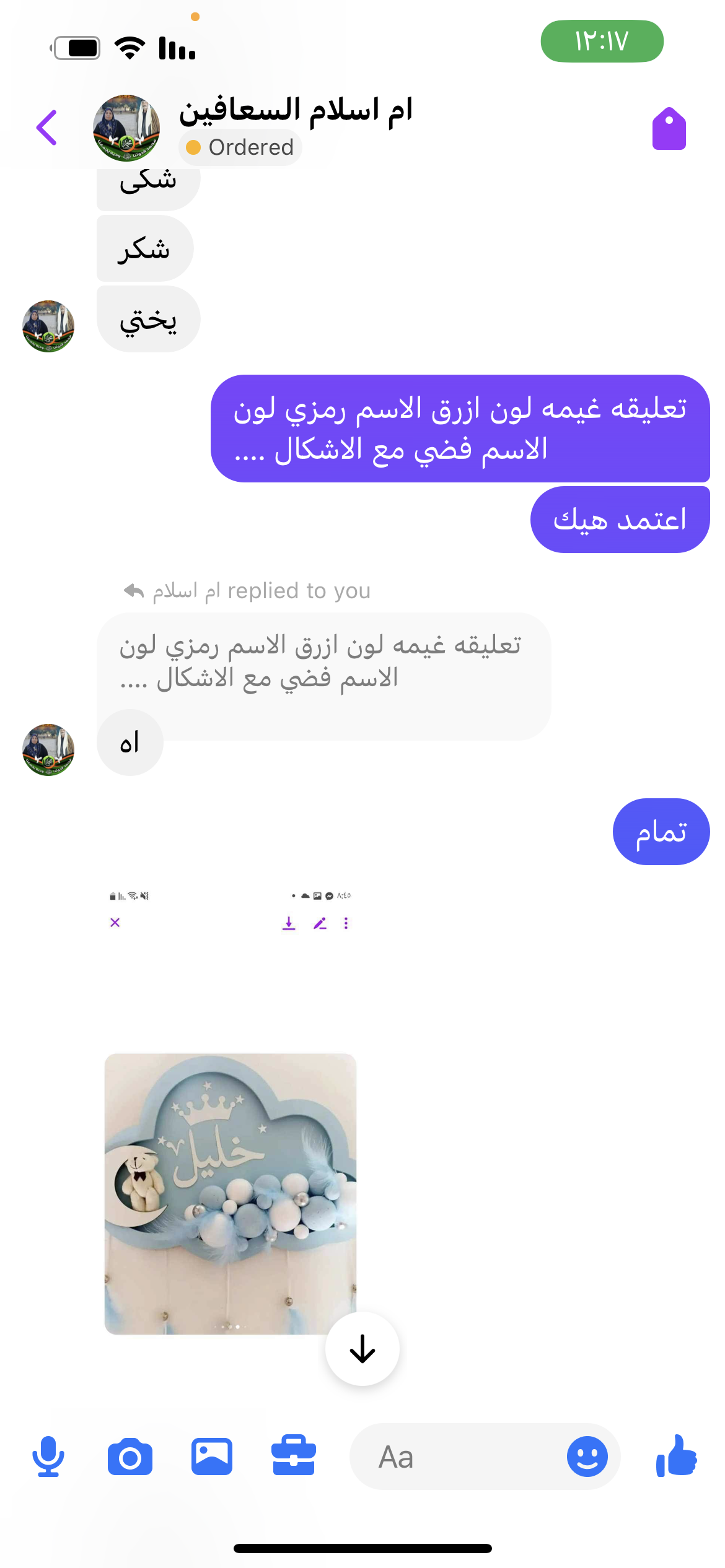 تعليقه غيمه لون ازرق الاسم رمزي لون الاسم فضي مع الاشكال ….