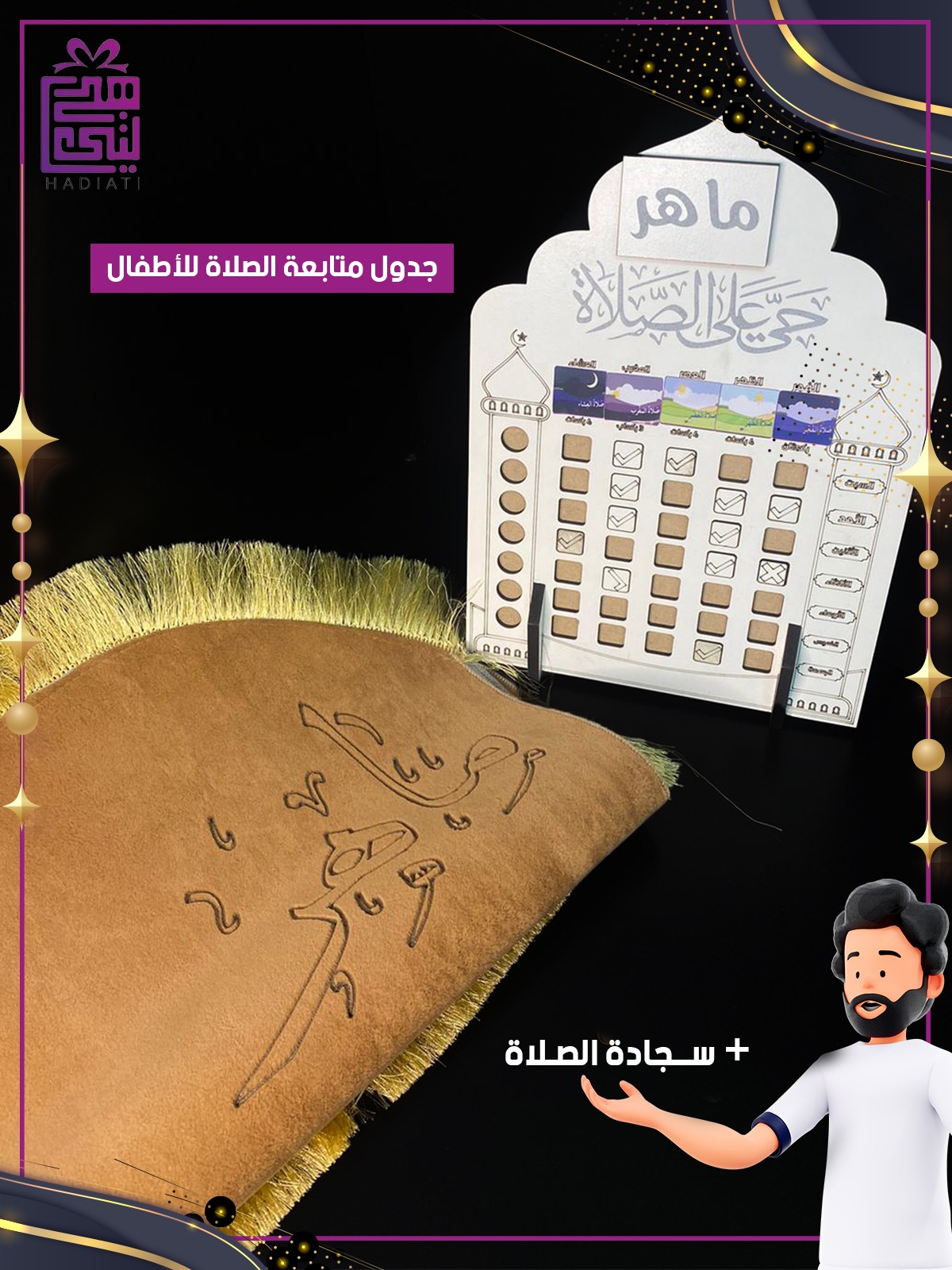 جدول متابعة الصلاة مع سجاده حجم كبير لون بني الاسم الاء