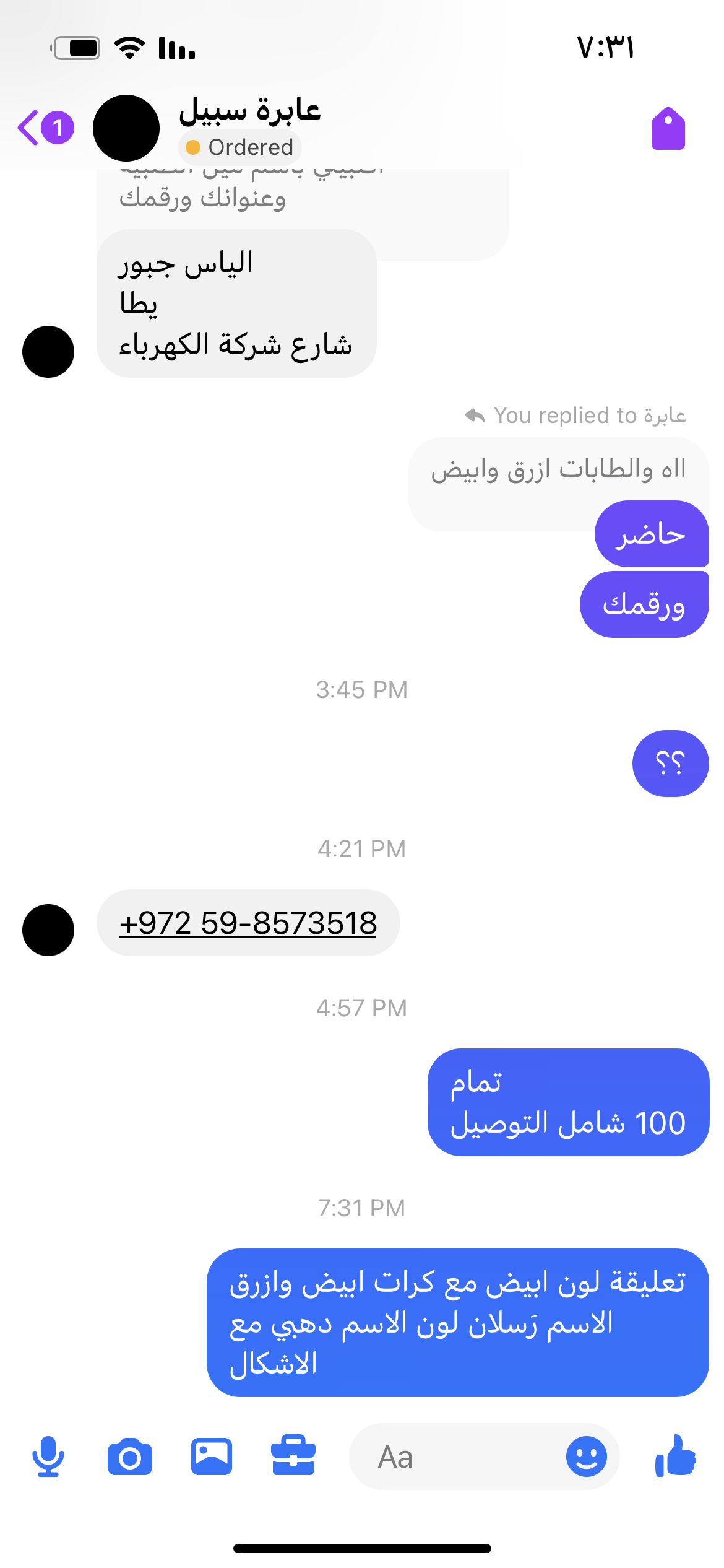 تعليقة لون ابيض مع كرات ابيض وازرق الاسم رَسلان لون الاسم دهبي مع الاشكال