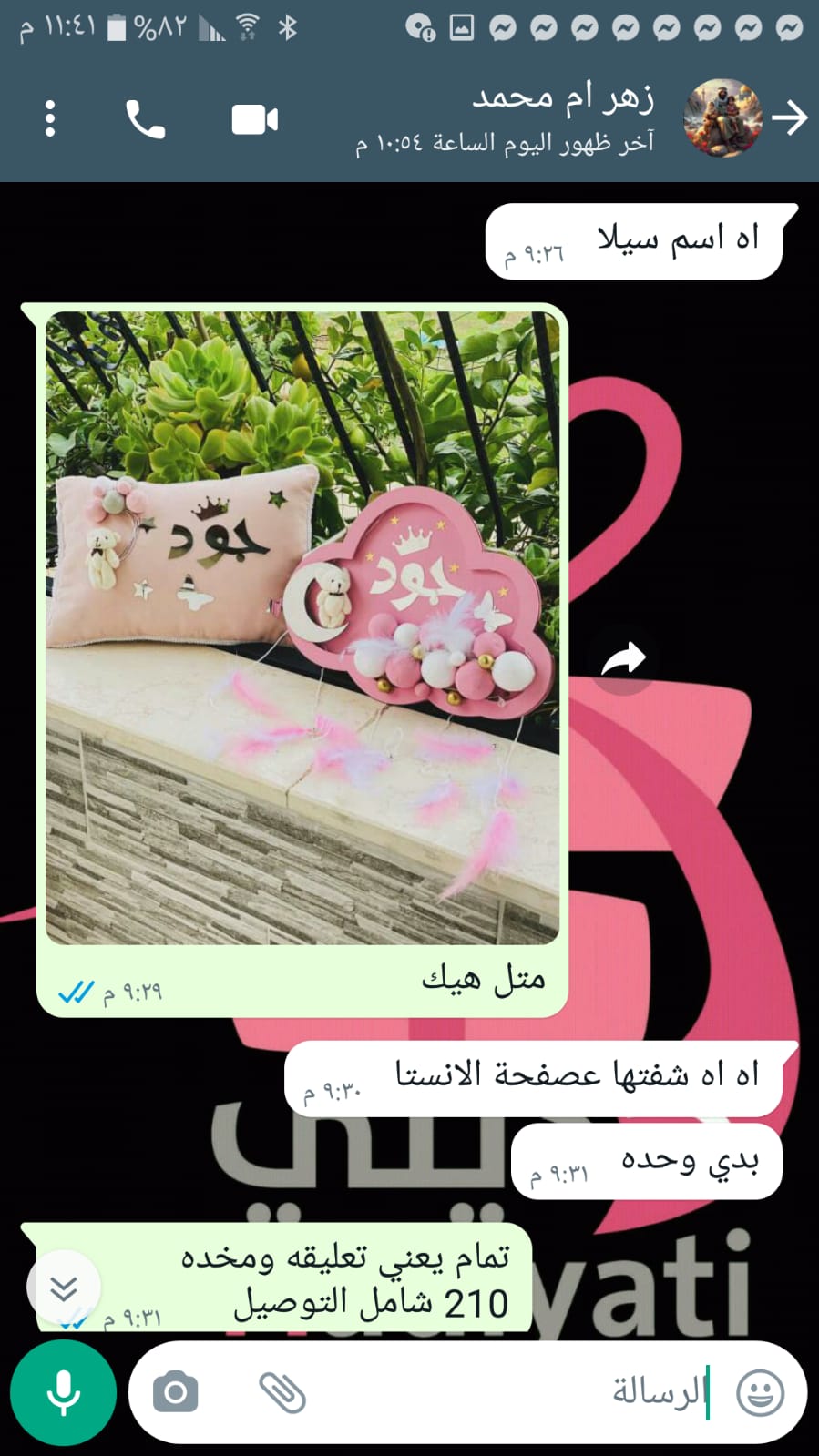 تعليقة غيمه لون زهري الاسم سيلا لون الاسم دهبي مع الاشكال