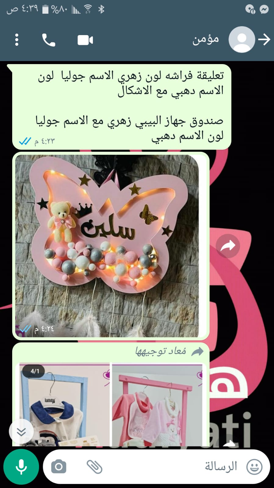تعليقة على شكل فراشه لون زهري الاسم جوليا لون الاسم دهبي مع الاشكال