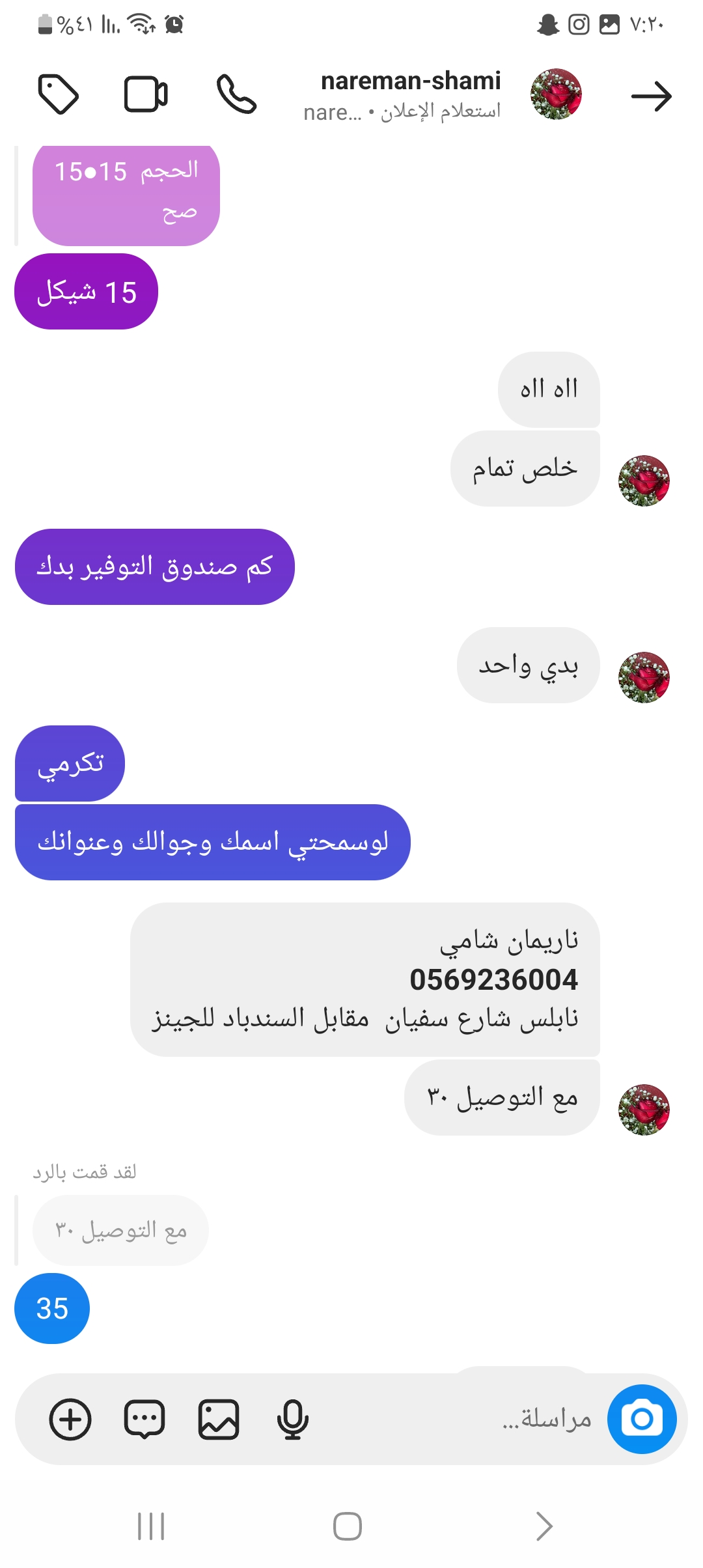 شامل توصيل50شيكل ملاحظة وقت التوصيل بفترة النهار والصباح
