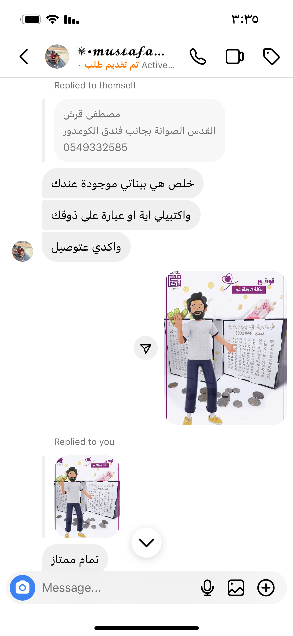 ١-الكتابه على الحصاله اية القرانيه نفس يلي بالصوره … المبلغ 50000 ….