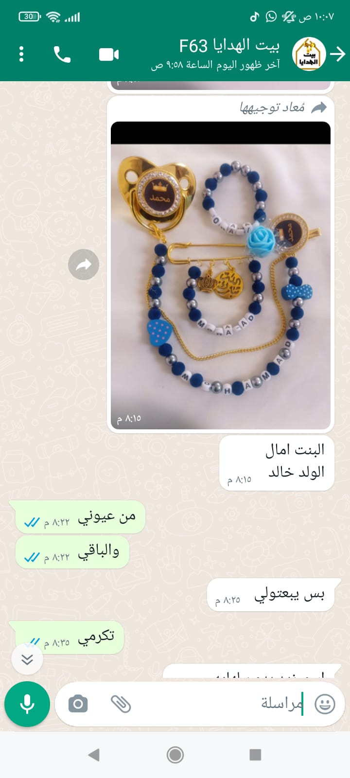 *دبوس واسواره لون ازرق مكتوب عليها اسم زيد