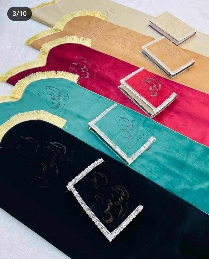 ركن الصلاة لون ابيض...... مصليه لون سماقي اسم ام محمد ... مصحف لون سماقي اسم ام محمد