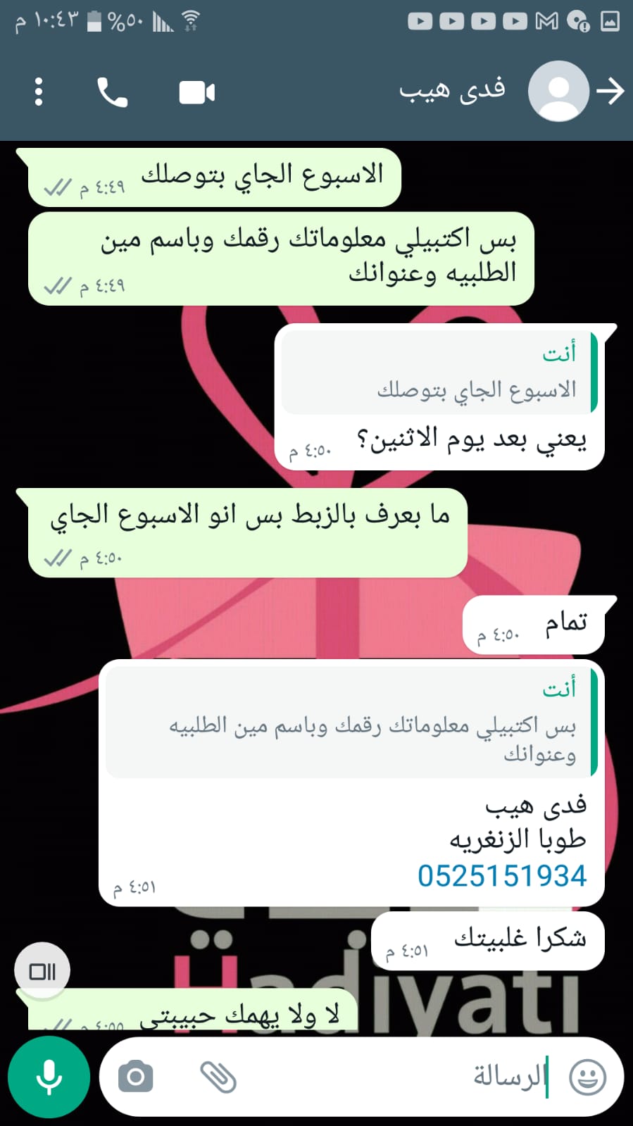 | اسم شركة التوصيل | |