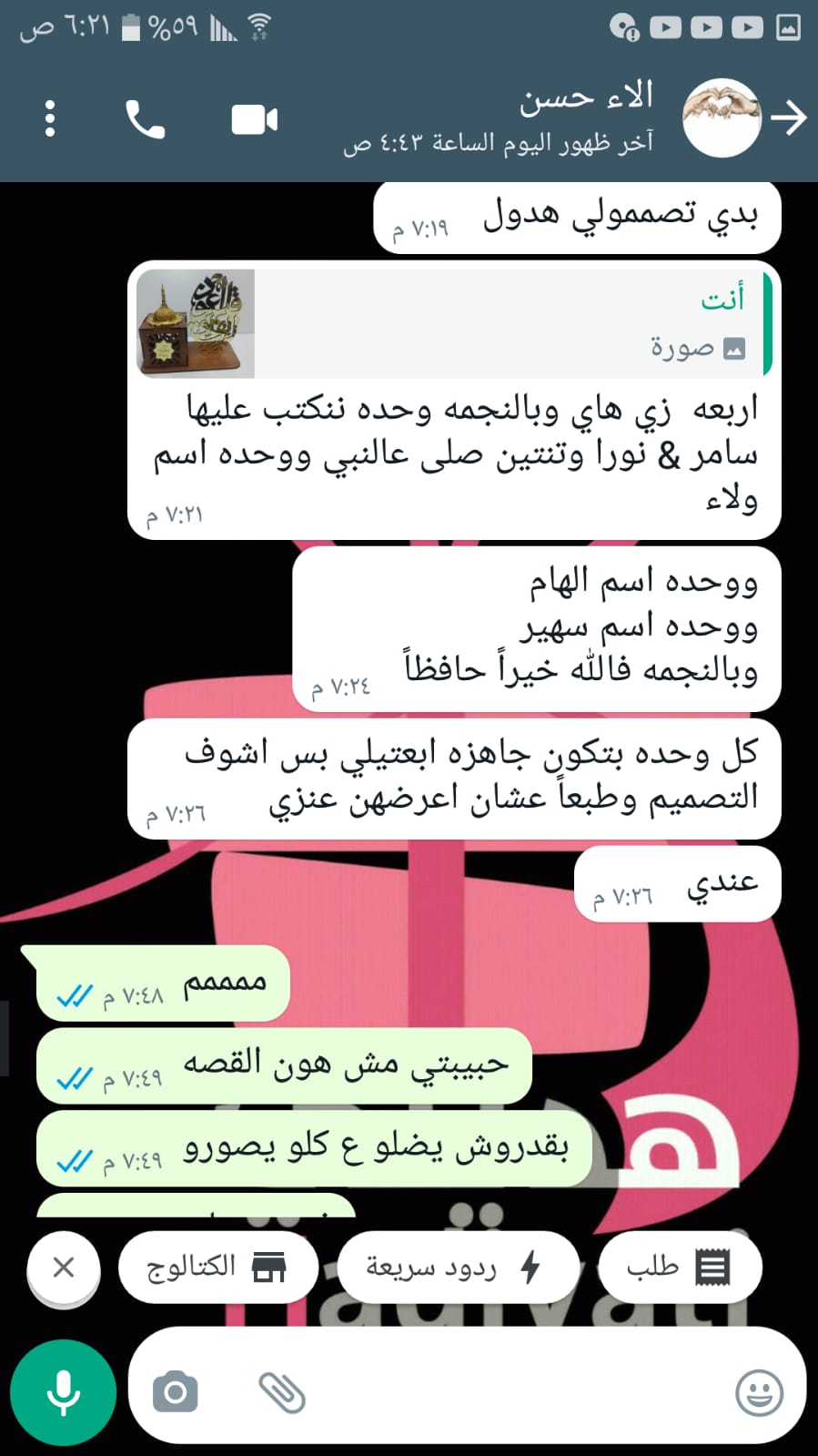1- قل اعوذ برب الفلق وبالنجمة من الطفل محمد شحادة 2- قل اعوذ برب الفلق وبالنجمة سامر & نورا 3- قل اعوذ برب الفلق وبالنجمة صلي على النبي 4-قل اعوذ برب الفلق وبالنجمة صل على النبي 5- قل اعوذ برب الفلق وبالنجمة اسم ولاء 6- مبخرة اسم الهام وبالنجمة فالله خيرآ حافظآ 7- مبخرة اسم سهير وبالنجمة فالله خيرآ حافظآ 8- مبخرة اسم أبو محمد وبالنجمة قل اعوذ برب الفلق