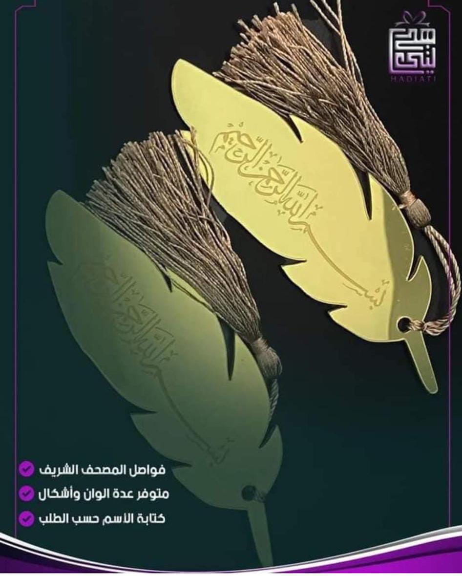 فاصل قران عدد 16حبه لون ذهبي من جهه بسم الله الرحمن الرحيم وجهه اسم احتيار ريشه