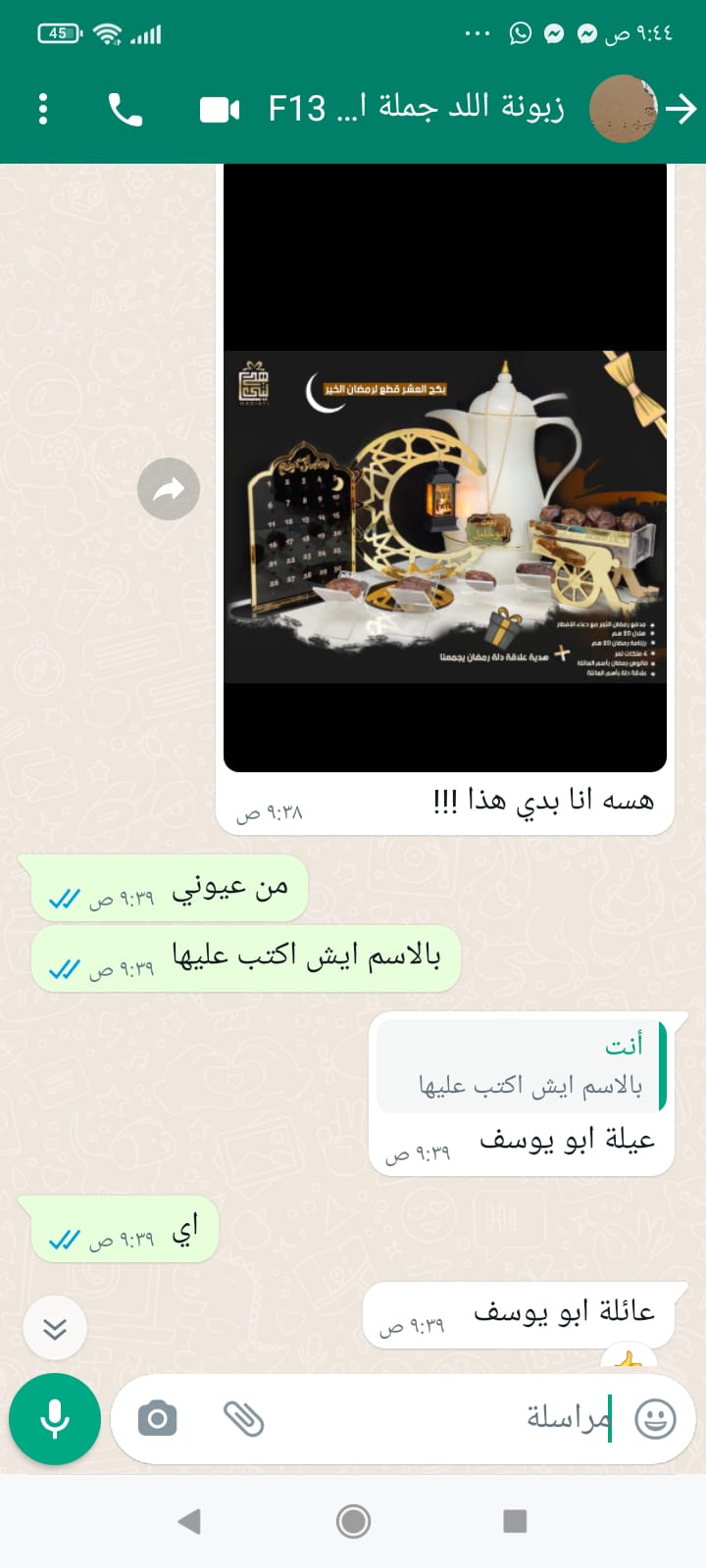 بكج رمضان مكون من 10قطع مكتوب عليها عائله