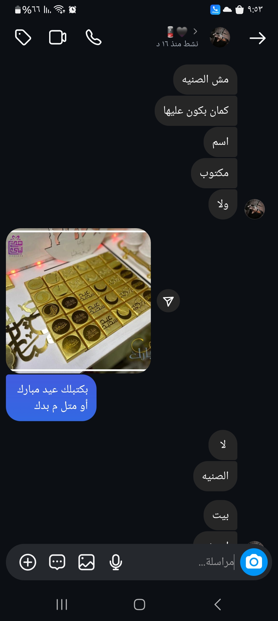 صنيه مع شوكلاته بالاسم بيت أبو خليل وتعليقه دله مكتوب عليها اسم قهوه ابو خليل