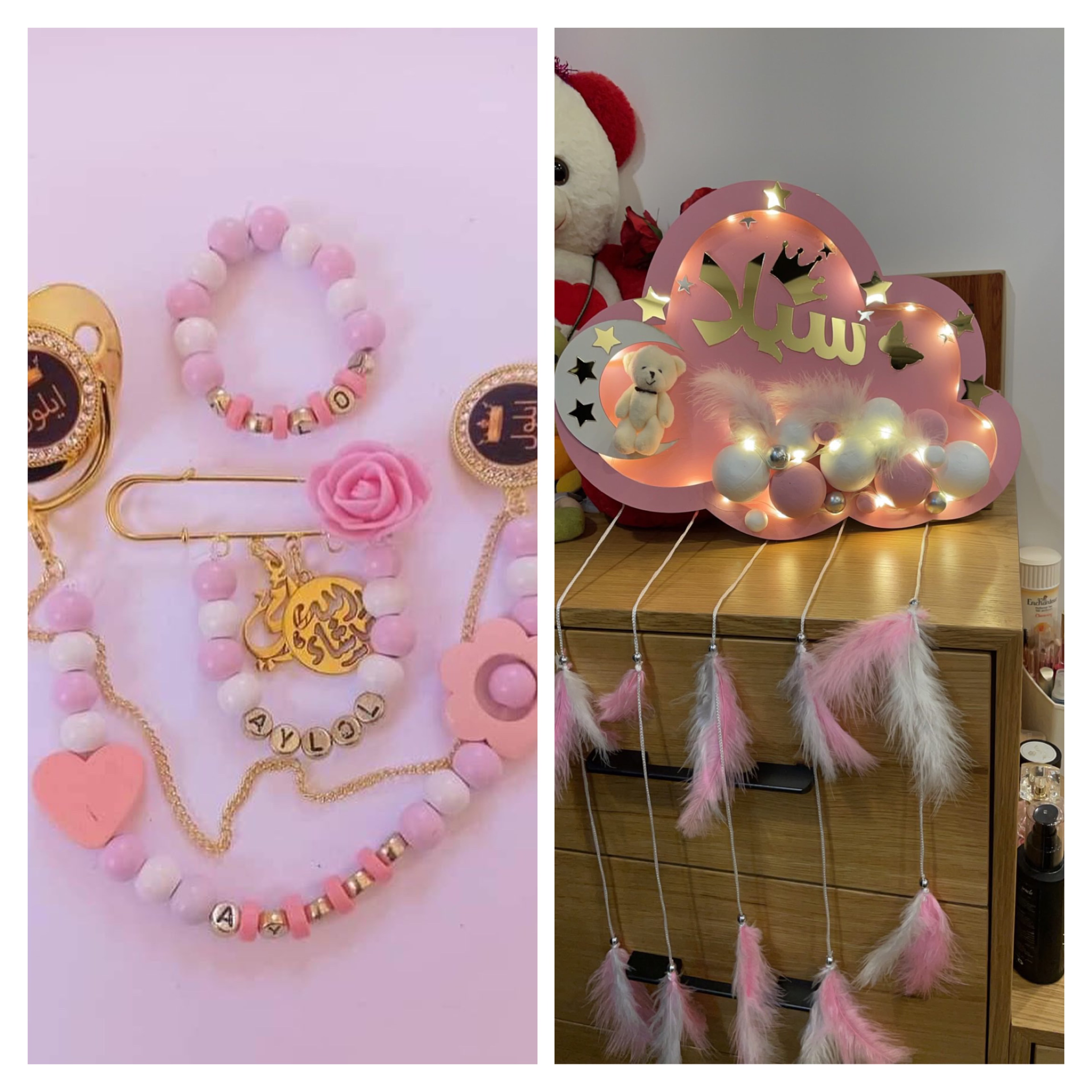 تعليقه لون زهري الاسم كريمه لون الاسم دهبي مع الاشكال