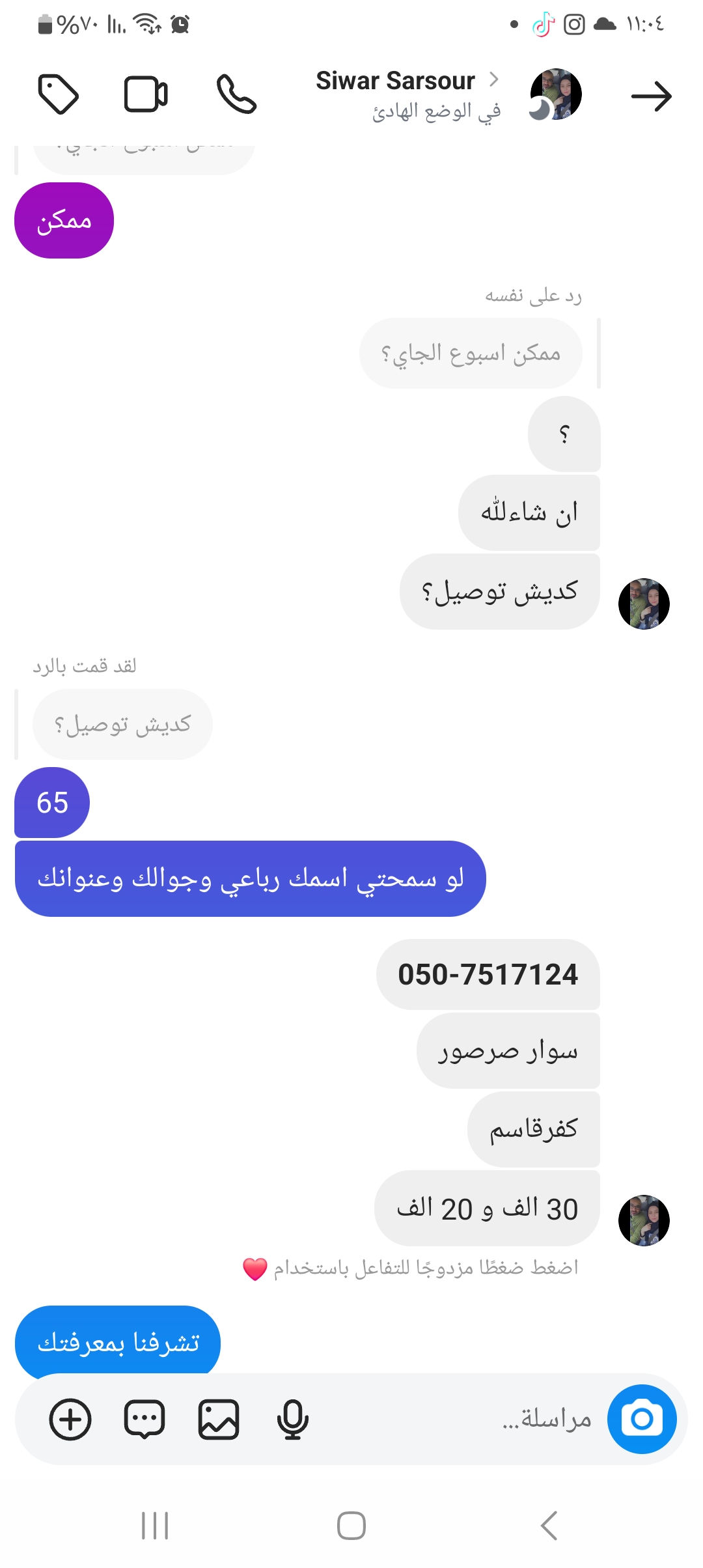 | السعر المبيوع | 70 شيكل |