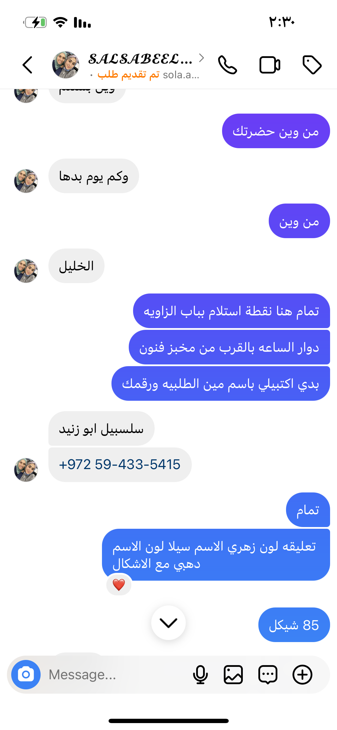 | السعر المبيوع | 85 شيكل |
