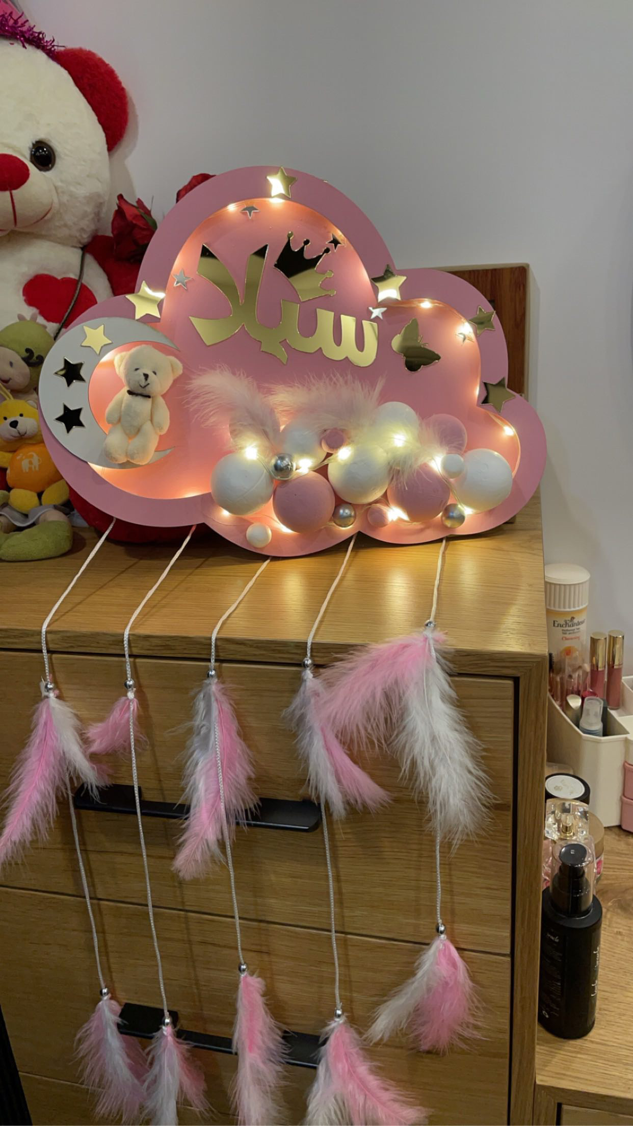 تعليقه لون زهري الاسم سيلا لون الاسم دهبي مع الاشكال