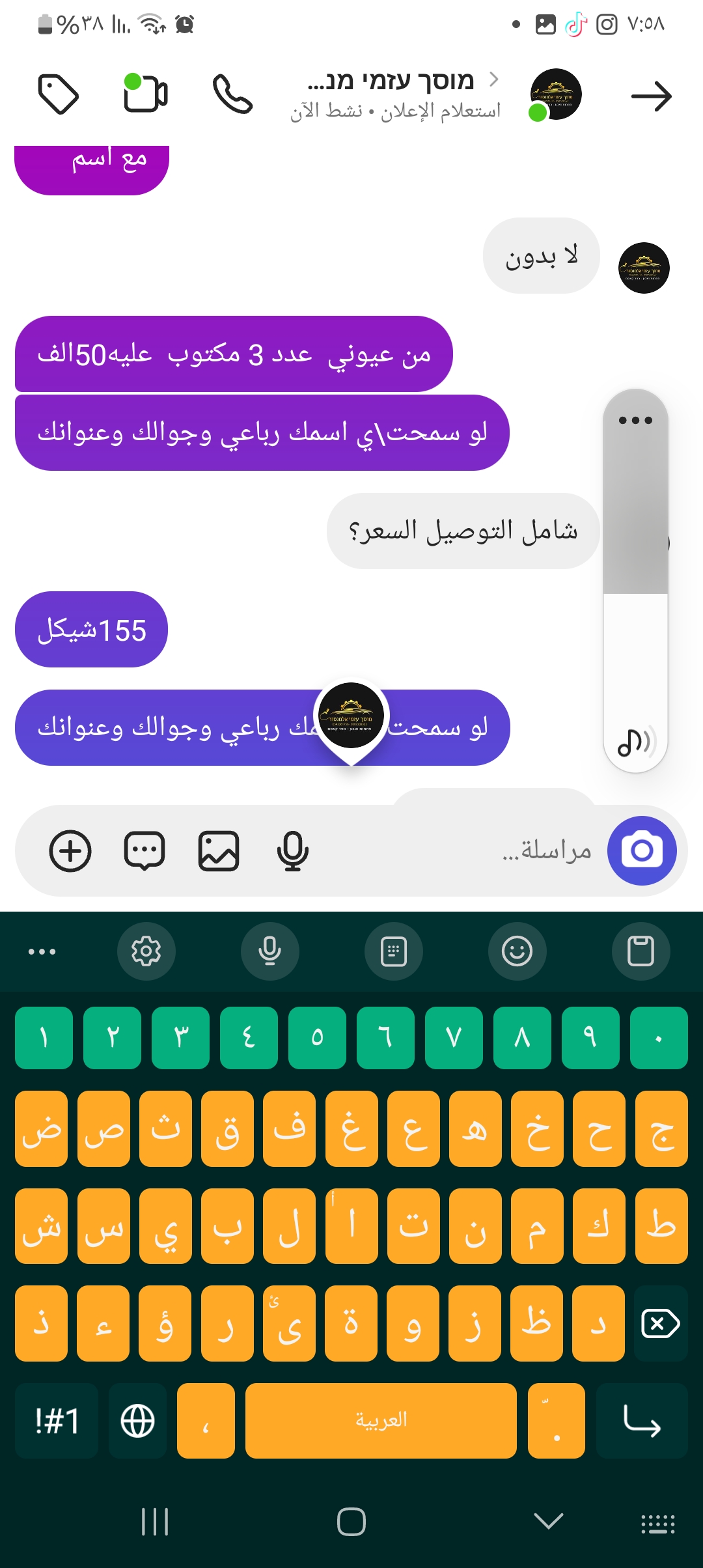| سعر التوصيل | شيكل |