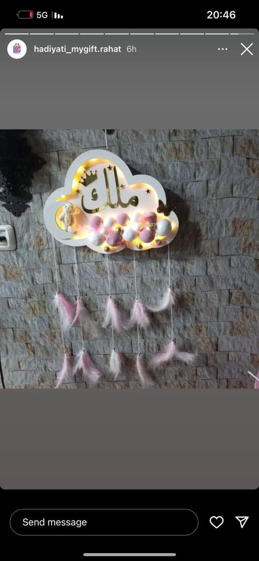 غيمه مع اضاءة لون ابيض اسم ميان لون الاسم ذهبي