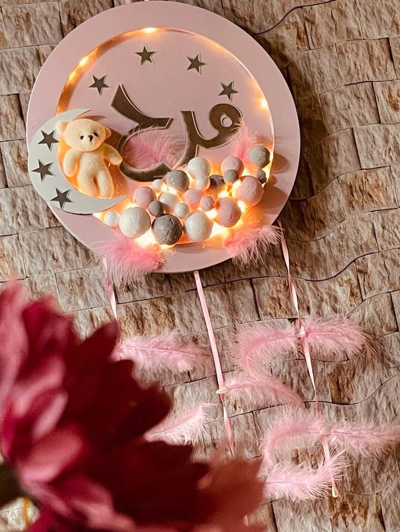 تعليقة دائرة لون زهري الاسم تولين لون الاسم دهبي مع الاشكال